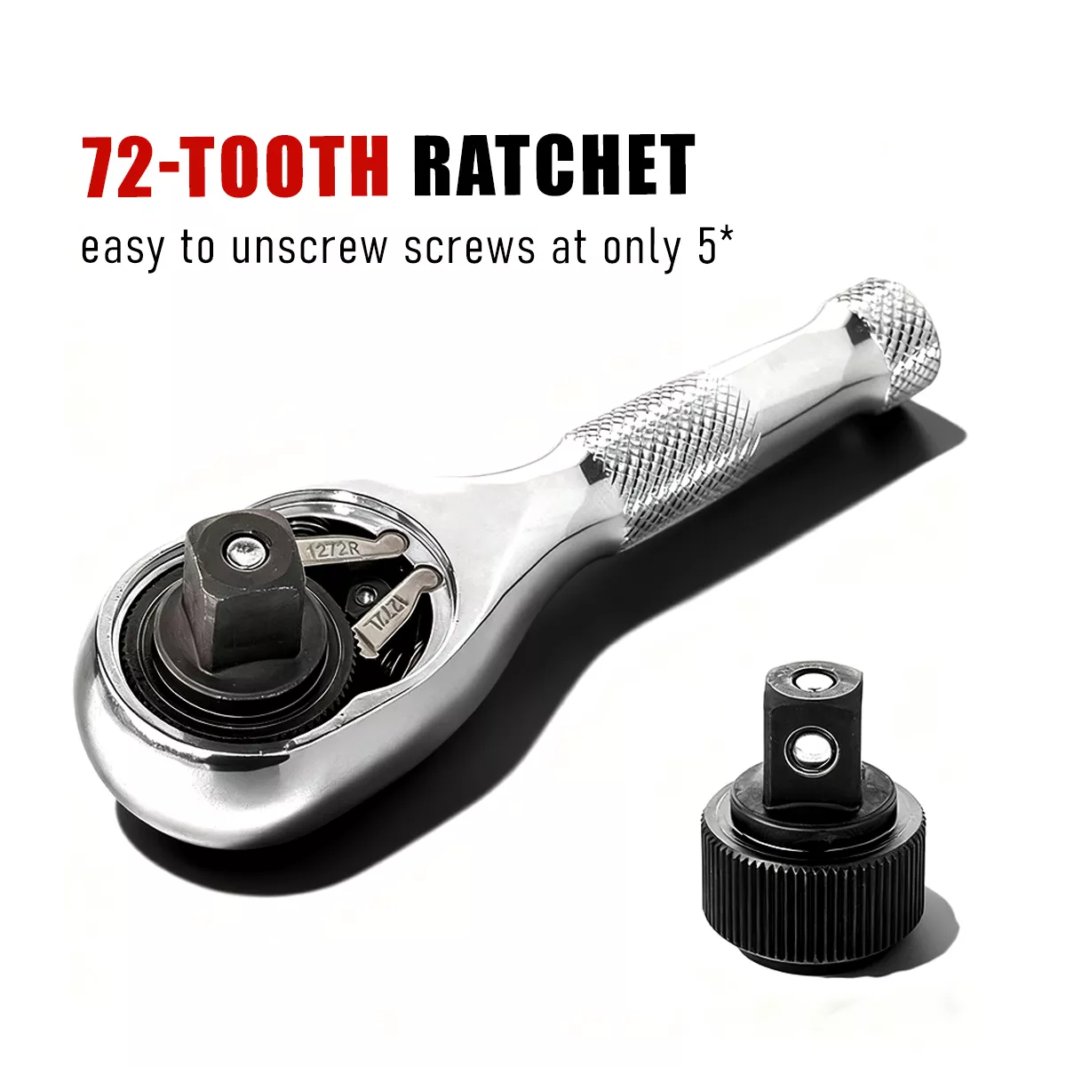 1/4 Inch Drive Stubby Ratchet Mini 72-Tooth Quick Release Socket Wrench