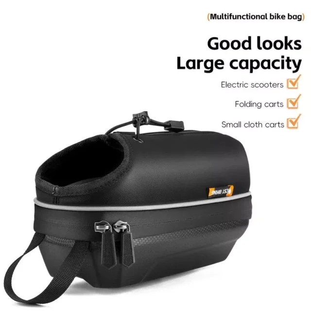 Whether you’re cruising through the city or tackling rugged trails, this 2.2L multifunctional bike handlebar bag is your perfect cycling companion. Designed for cyclists who value both function and style, this compact yet spacious handlebar bag offers all the storage you need without slowing you down. Carry your essentials—tools, snacks, water bottle, or even your phone—securely and within arm’s reach. With its sleek black finish and aerodynamic shape, it fits seamlessly on folding bikes, e-scooters, mountain, and road bikes alike.