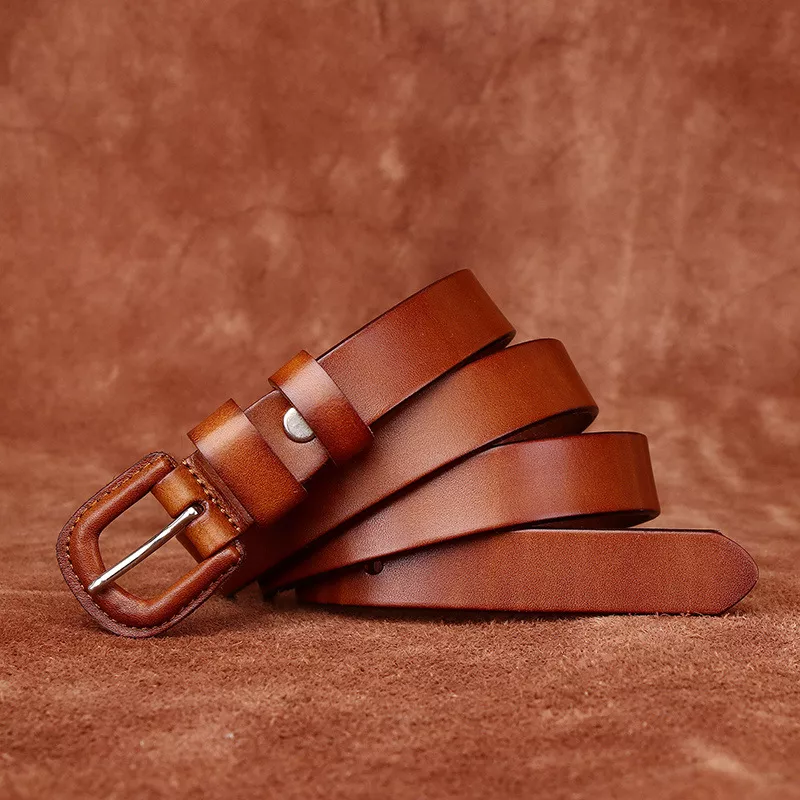 Made from high-quality pure cowhide leather, this belt stands out with its luxurious feel and impeccable craftsmanship. The stylish 2.3 cm width offers just the right amount of support and sophistication, ensuring that it holds up your jeans, skirts, or dresses with ease. Featuring a classic copper buckle, this belt brings a vintage touch that enhances your overall look, making it a staple piece in your accessory collection.
