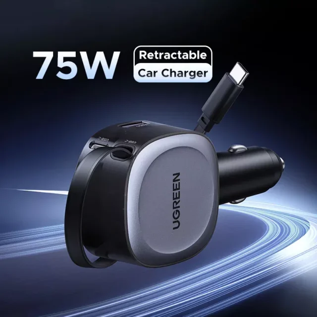 2-in-1 Retractable 75W Fast Car Charger with USB-C and USB-A Ports