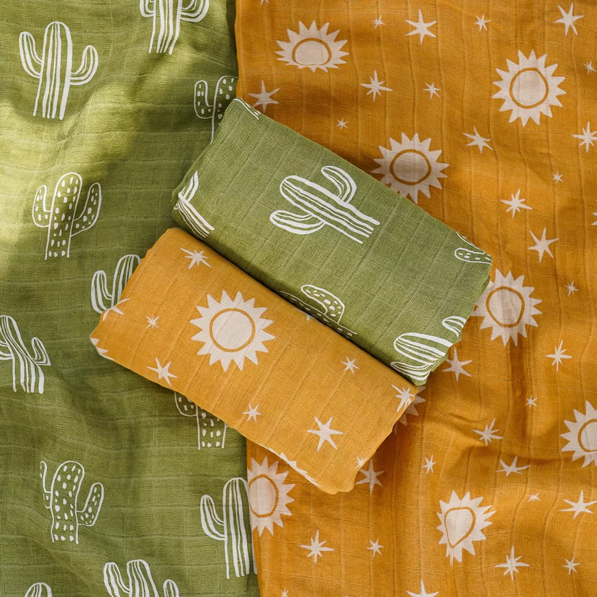 These muslin baby blankets are designed for year-round use. They are light enough for summer naps and breathable enough to layer during cooler months. Use them for swaddling newborns, covering your baby in the stroller, as a nursing cover, tummy-time mat, or a soft surface for playtime.