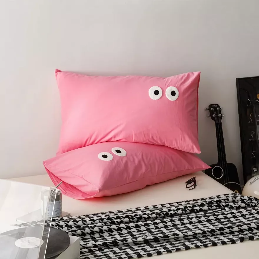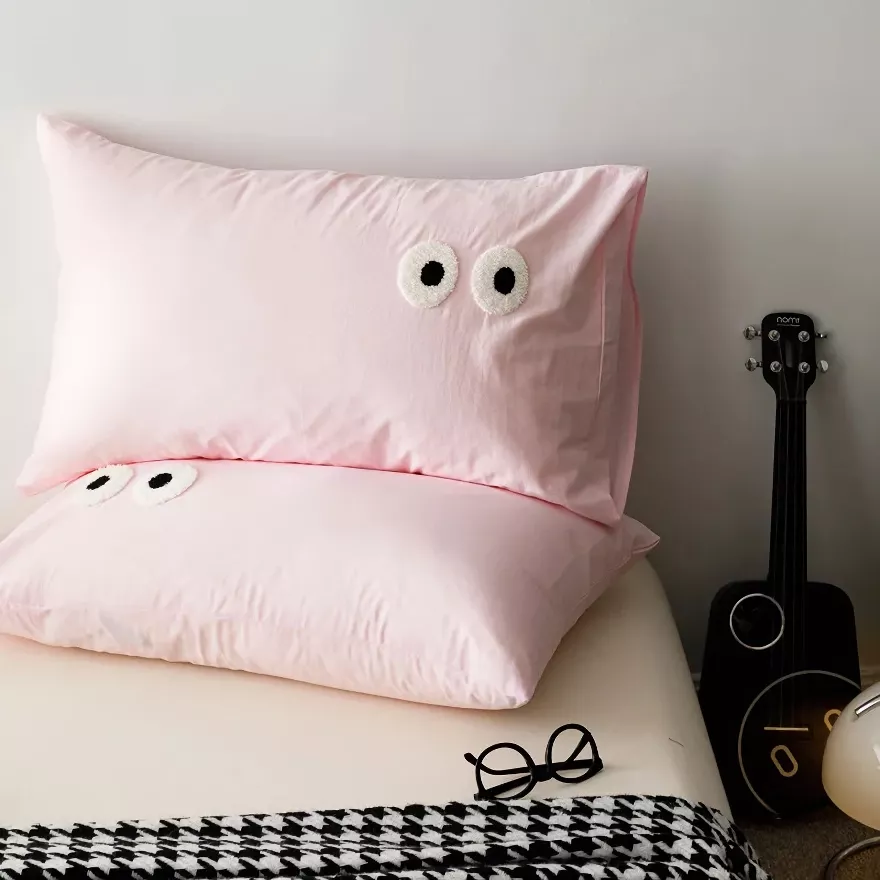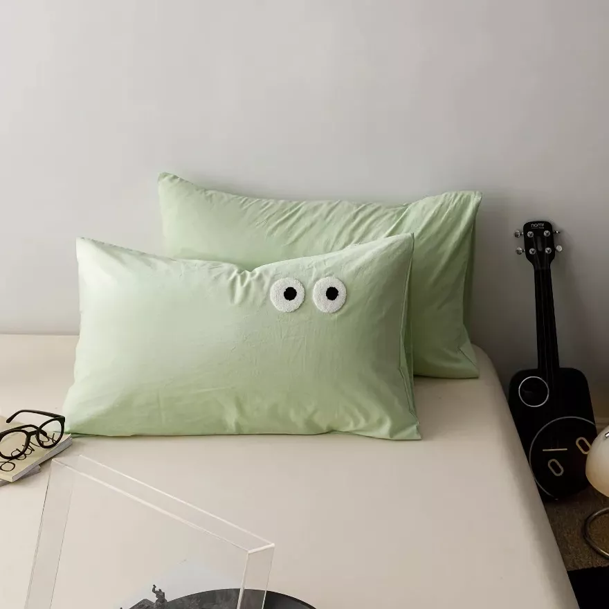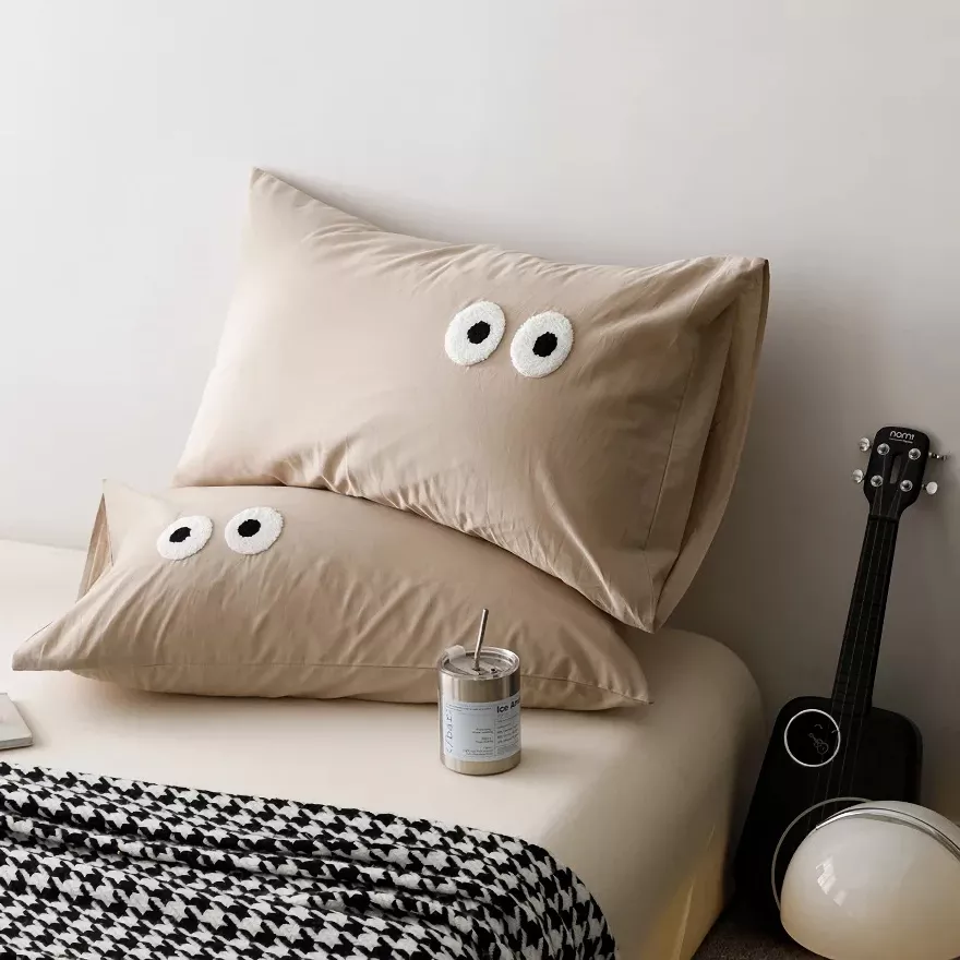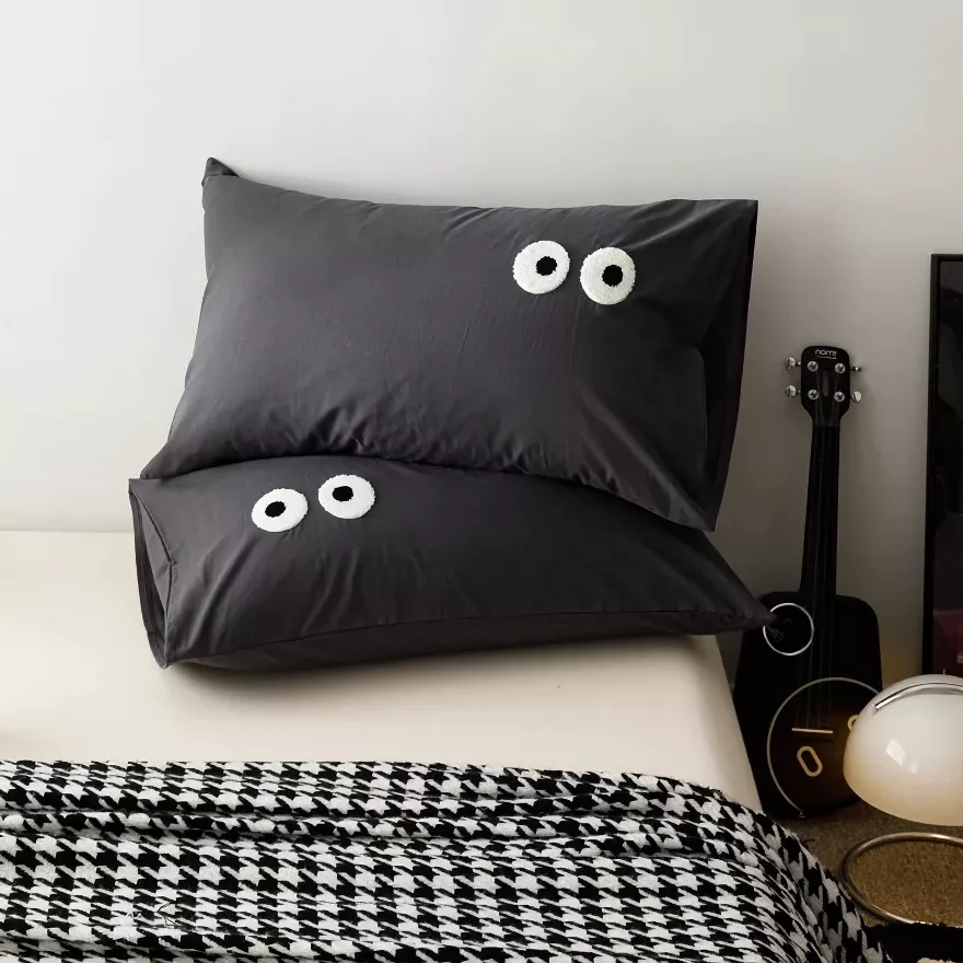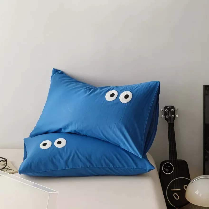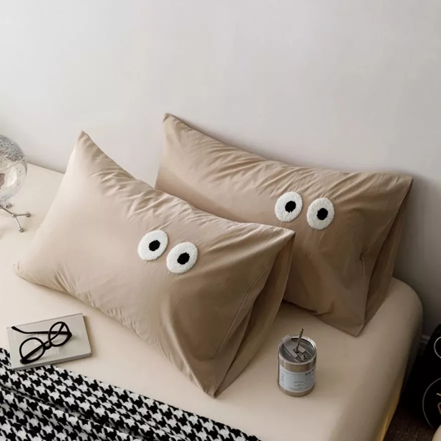 Bring a calm, modern charm to your bedroom with these beautifully designed pillowcase covers. Made to look simple yet expressive, the embroidered big-eye detail adds a gentle touch of personality without overwhelming your decor. The washed cotton surface feels soft and relaxed, creating a cozy look that works perfectly with minimalist, modern, or Scandinavian-inspired interiors.