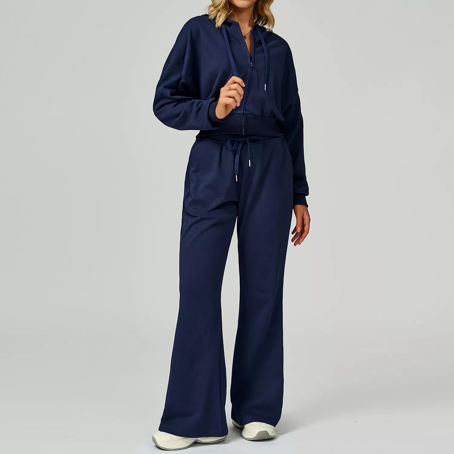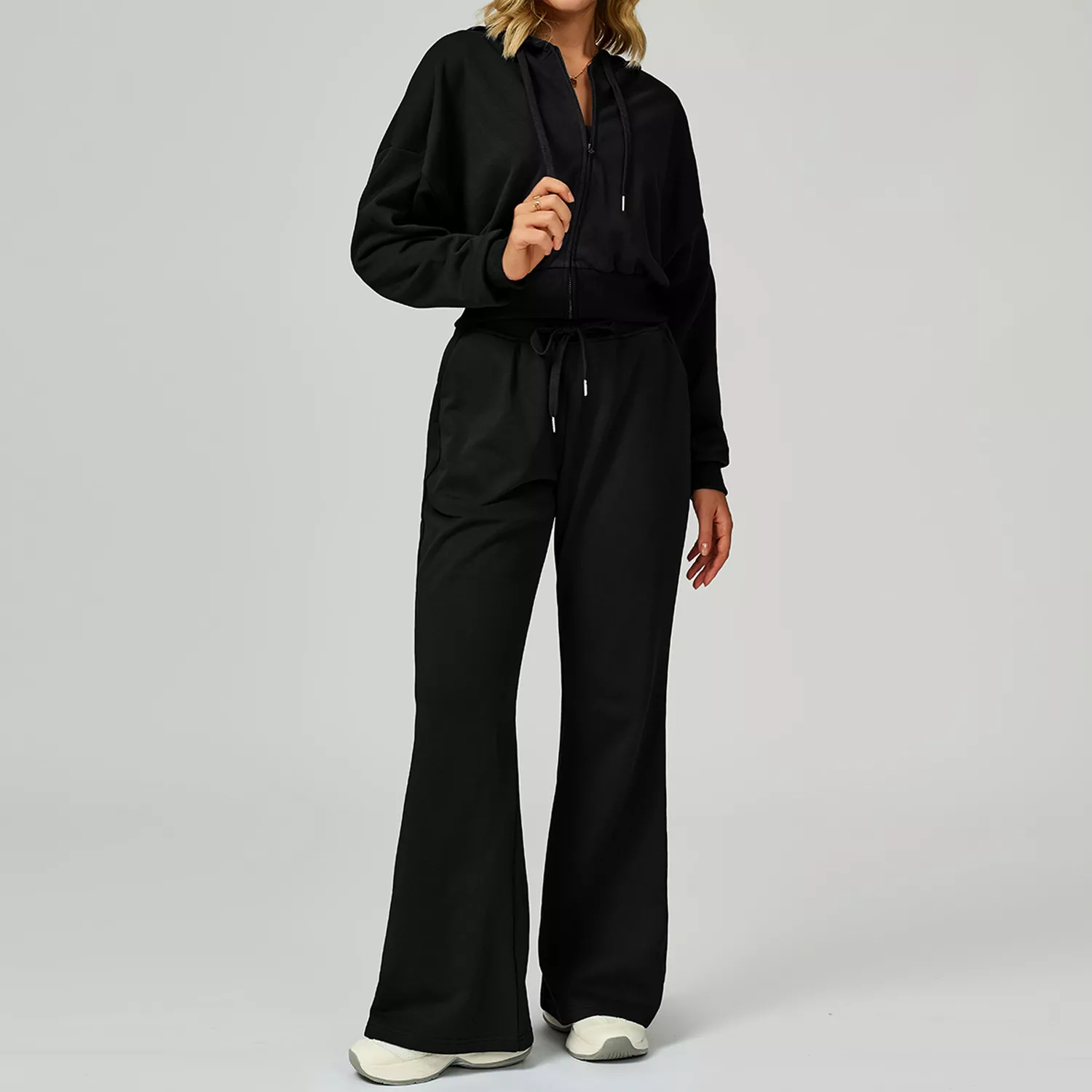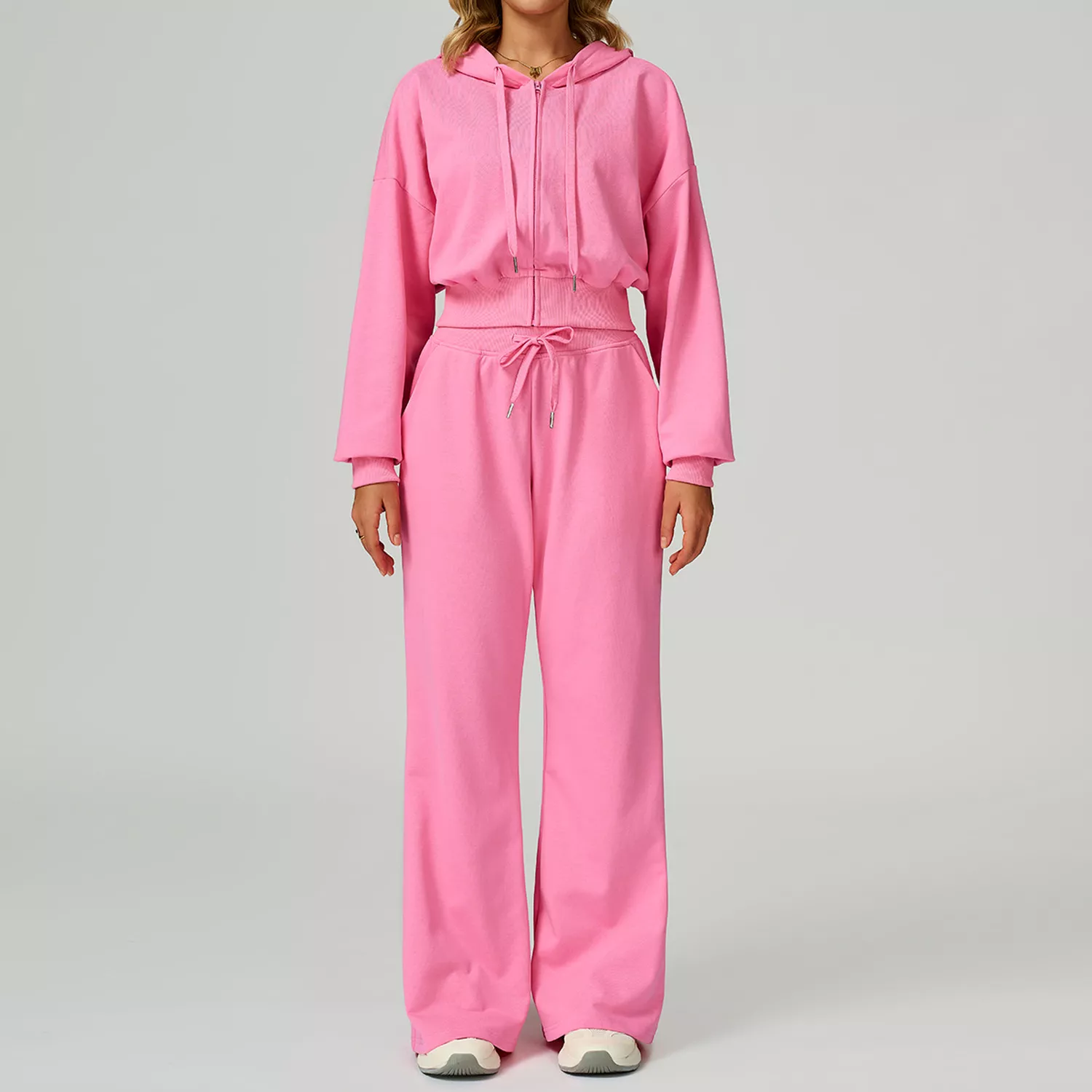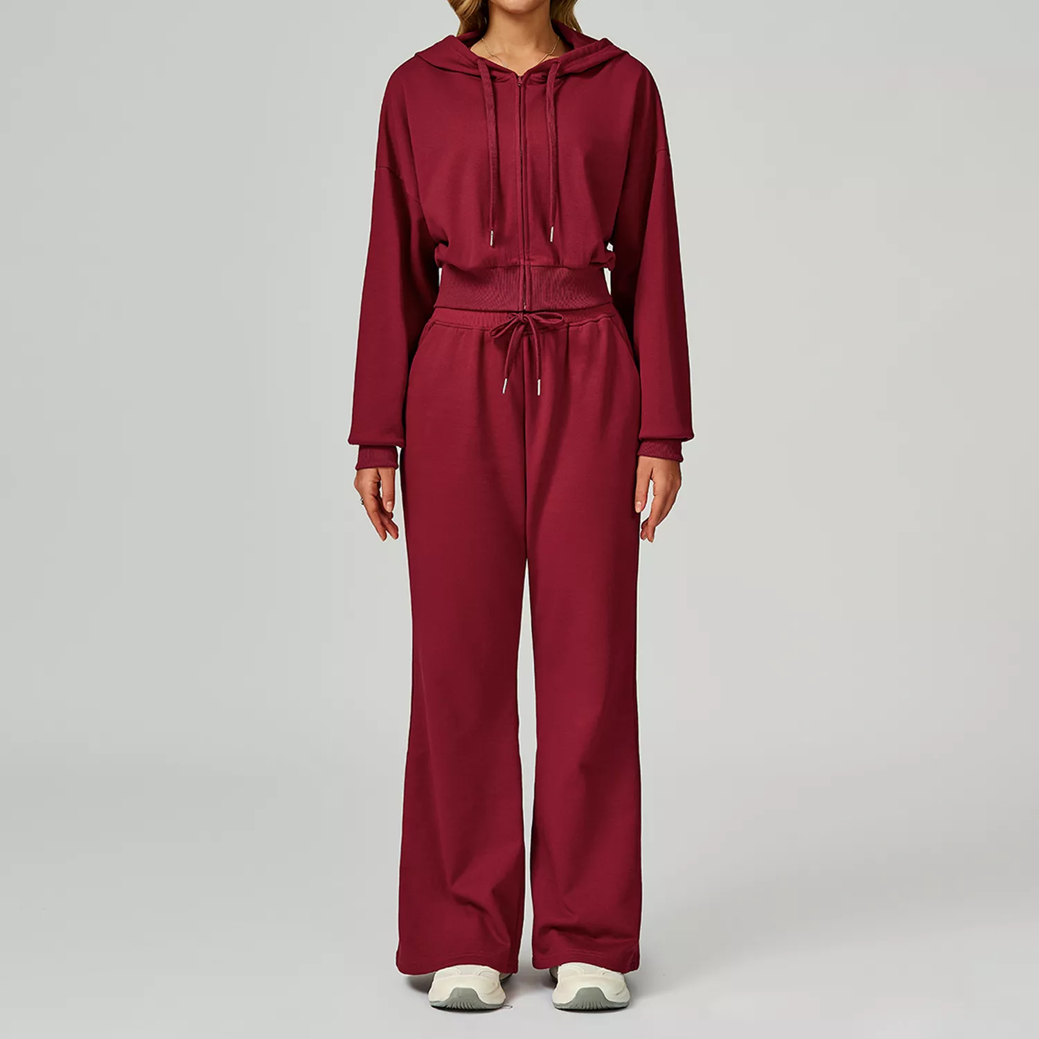 This matching set is more than just sportswear—it’s your new go-to for effortless style. The hooded sweatshirt with zip closure makes layering simple, while the straight-leg pants add a clean, modern touch. Whether you’re heading to the gym, enjoying a coffee run, or relaxing at home, you’ll feel confident and comfortable. Its timeless design and practical details make it a wardrobe essential for every season.