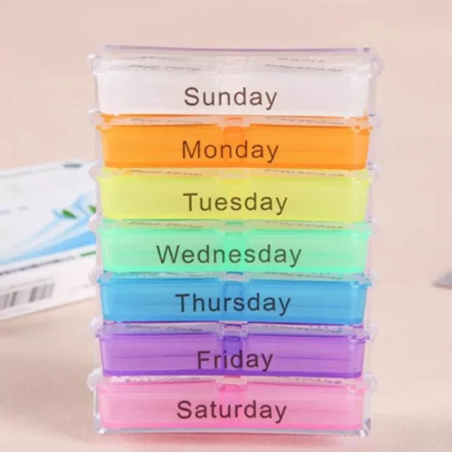 Engineered for daily use, this medicine organizer is crafted from 100% new high-quality plastic (PS + PP), making it strong, durable, and long-lasting. The 28 individual compartments allow for versatile use—perfect not only for pills but also for small accessories like earphones, paper clips, or even jewelry. Its colorful weekly pattern helps with routine management, ensuring you never miss a dose again.