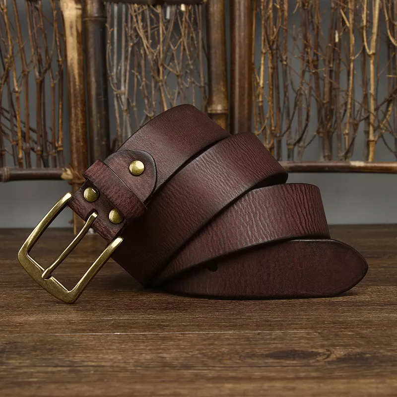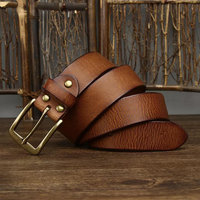 Crafted from high-quality pure cowhide leather, this belt boasts both durability and a luxurious feel. Measuring 3.8 cm in width, it provides excellent support and a bold look that enhances your outfit without overwhelming it. The antique copper buckle adds a classic touch, making this belt suitable for both casual and semi-formal occasions, ensuring you always look polished.