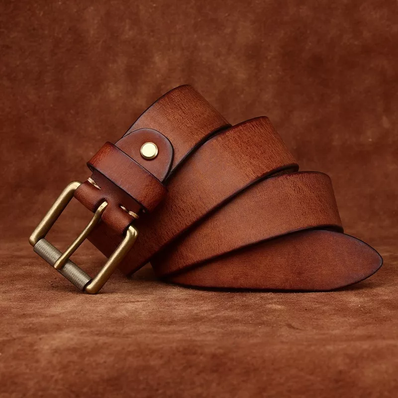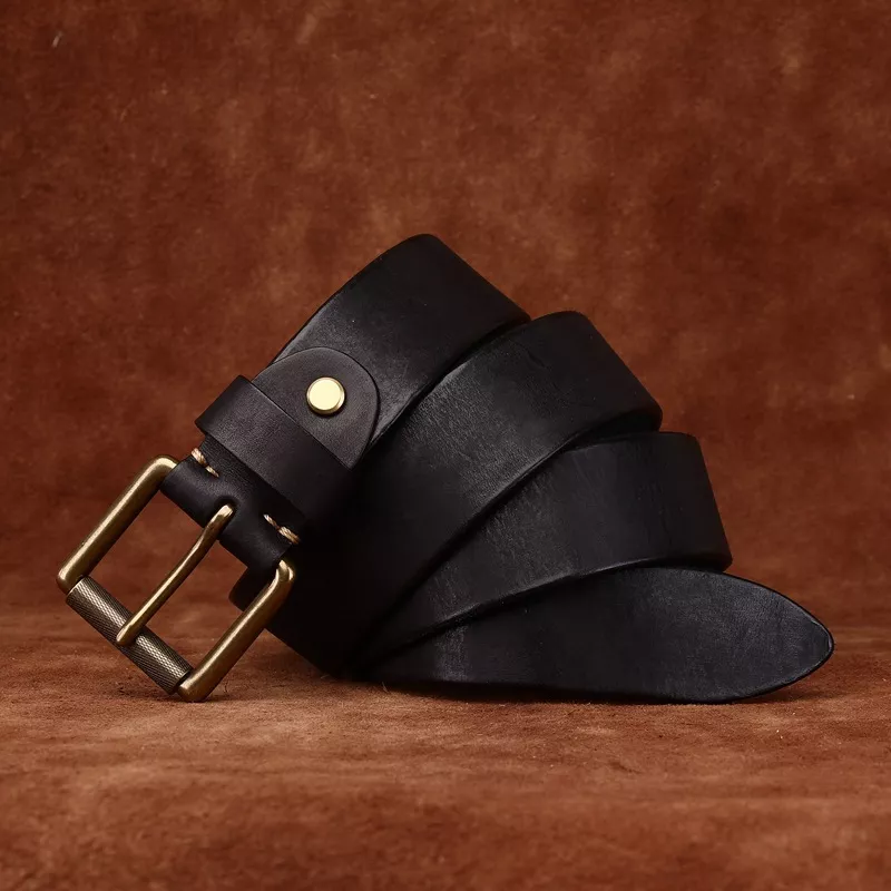 3.8CM Premium Cowhide Leather Belt with Copper Buckle for Men