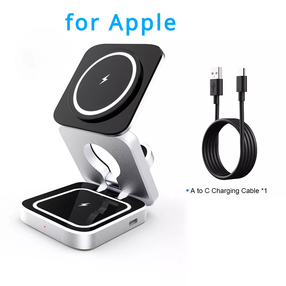 Stay powered up anywhere with the 3-in-1 Foldable Magnetic Wireless Charging Dock — your ultimate all-in-one charging solution for phones, smartwatches, and earbuds. Designed for Apple and Samsung devices, this sleek, portable charger keeps your essentials fully charged at home, at work, or on the go. Its foldable design makes it easy to slip into your bag or pocket, perfect for travelers and busy professionals who want convenience without clutter.