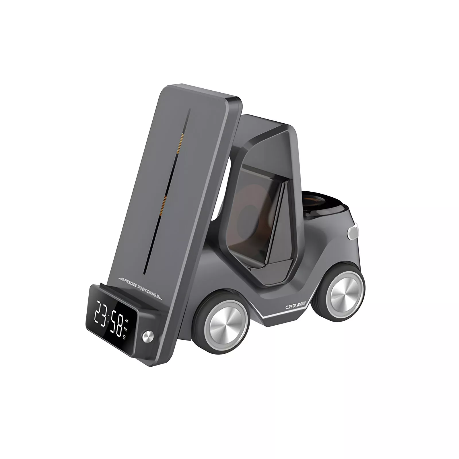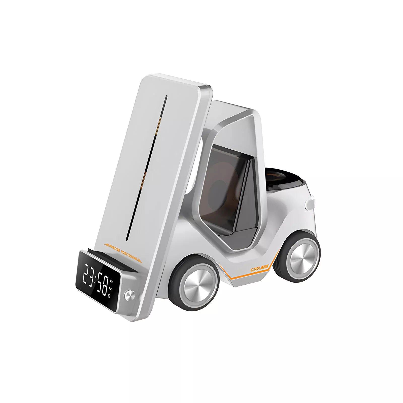 Meet the ultimate charging companion for your nightstand, desk, or travel bag — the 3-in-1 Forklift Design Wireless Charging Station. Designed for modern Apple users, this smart and stylish charger powers your iPhone, Apple Watch, and wireless earphones all at once. Featuring a fun forklift-inspired design with a built-in night light, it brings functionality and charm together in one compact device.