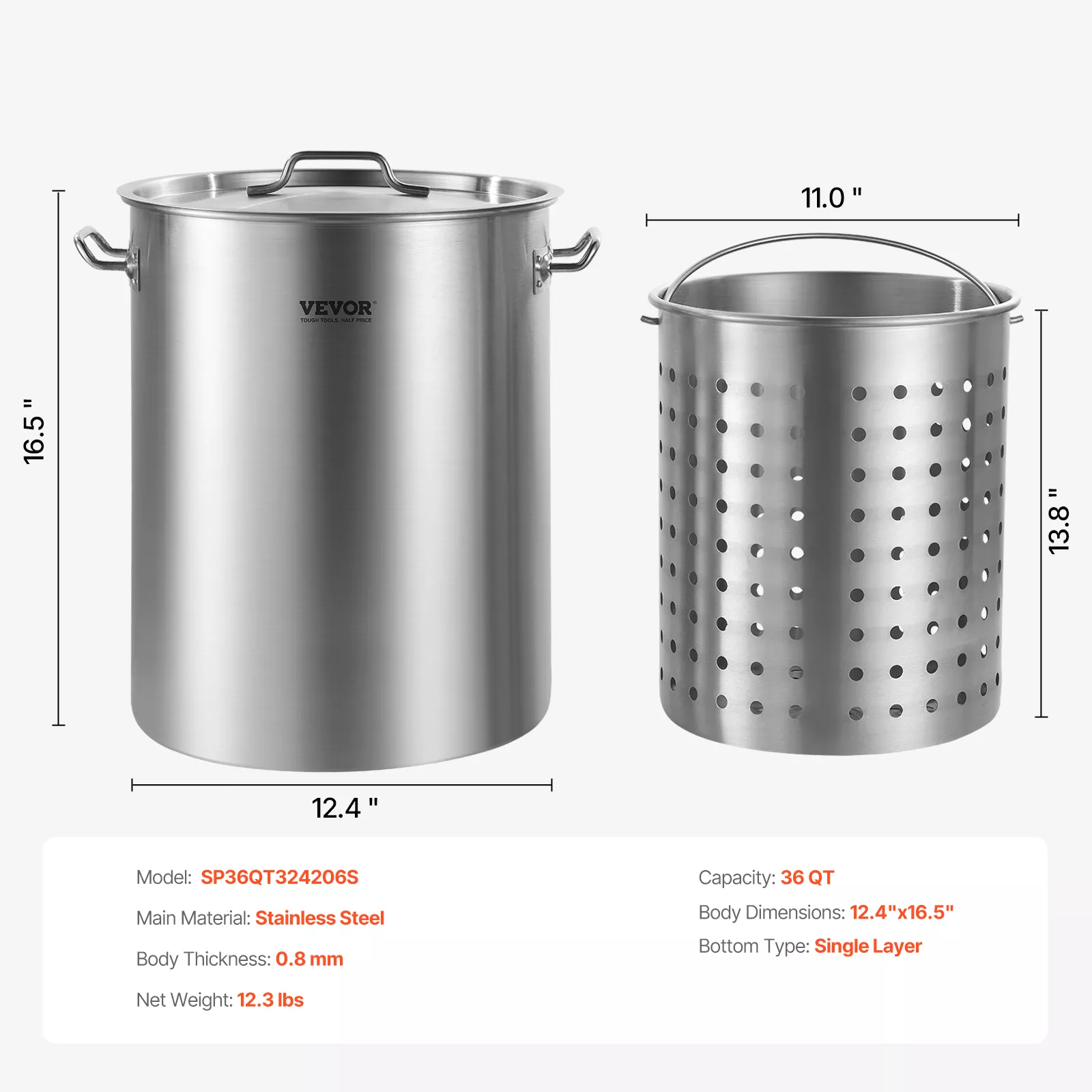 36QT Stainless Steel Stock Pot – Heavy Duty Chafing Dish for Cooking