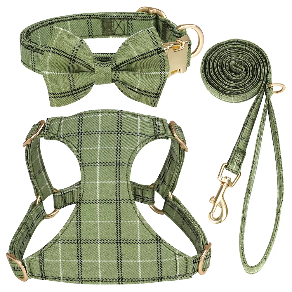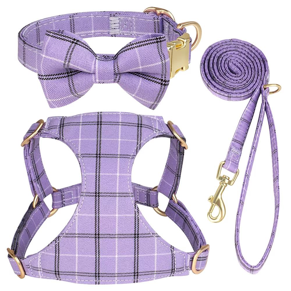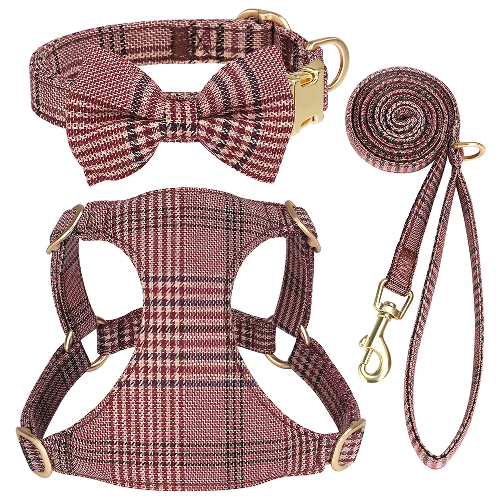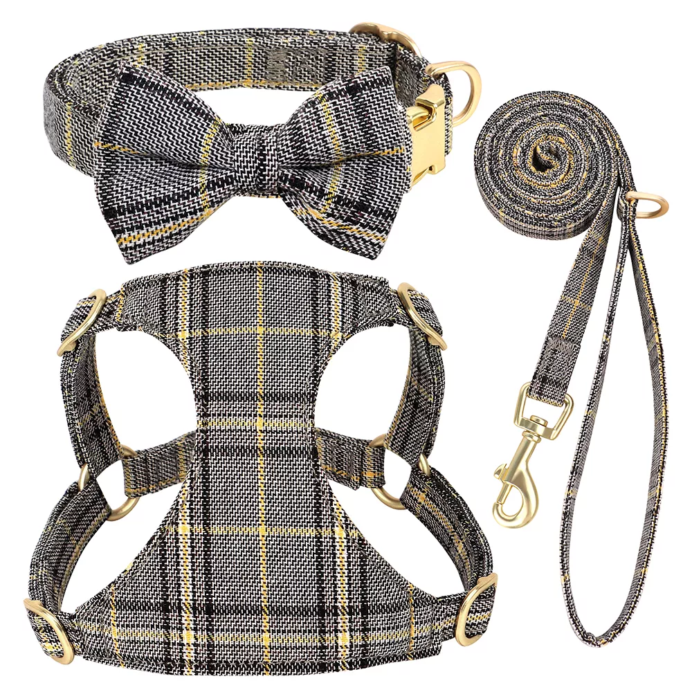 Order your 3pcs Plaid Bowtie Dog Collar Harness Leash Set today and let your furry friend step out in style all year long!