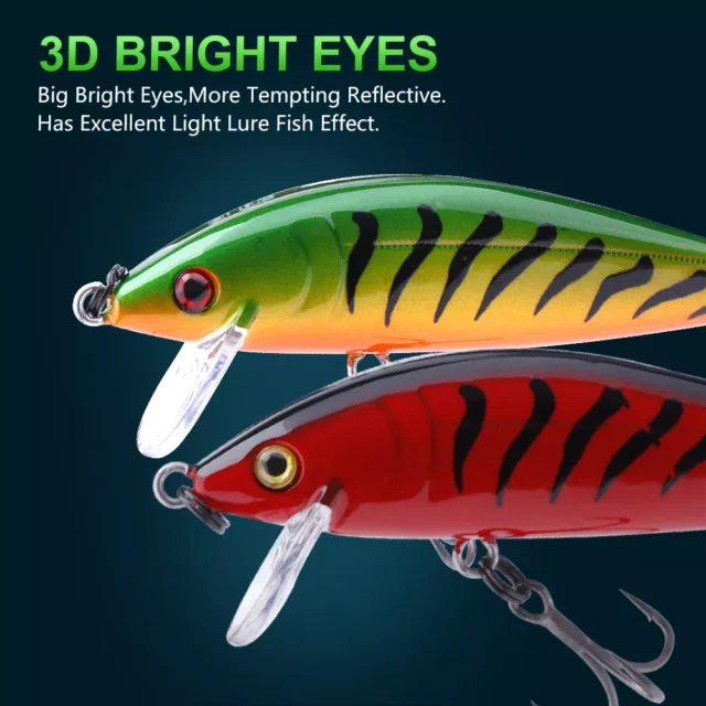 Step up your fishing game with this premium 3-piece sinking minnow lures kit – designed to mimic the movement, look, and flash of real baitfish. Each lure is 2.75 inches long and weighs 0.35 ounces, making it perfect for catching bass, trout, pike, walleye, and other aggressive freshwater and saltwater predators. With a lifelike body, realistic 3D eyes, and vivid colors, these lures trigger instinctive strikes that get results.