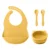4PCS Silicone Baby Feeding Set with Bear Bowl, Bib, Spoon & Fork