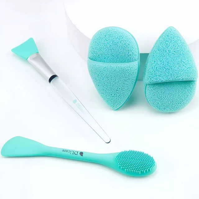 This set includes a double-ended silicone brush with a built-in massage head, a single silicone mask applicator, and two soft cleansing sponges. Each tool is crafted for durability, hygiene, and gentle care, making them ideal for sensitive skin on both the face and body. The handles are lightweight and comfortable to hold, ensuring full control during use. Whether you’re applying a hydrating cream or a thick mud mask, this set helps you achieve an even, flawless layer every time.