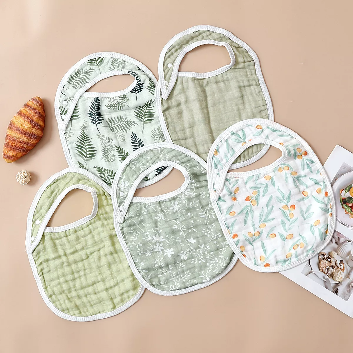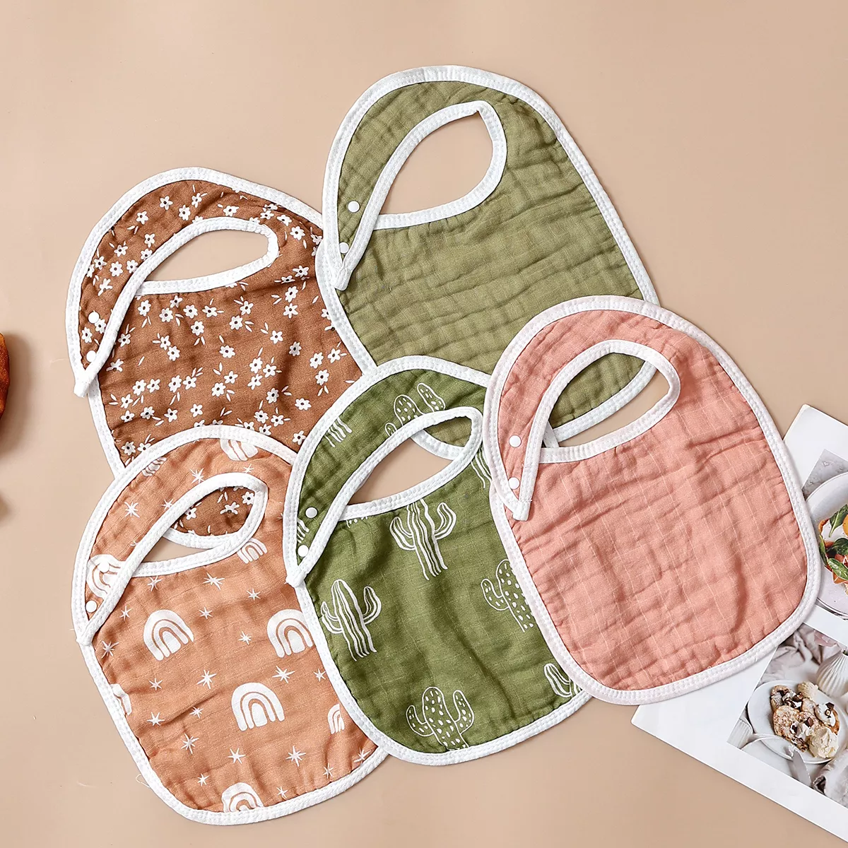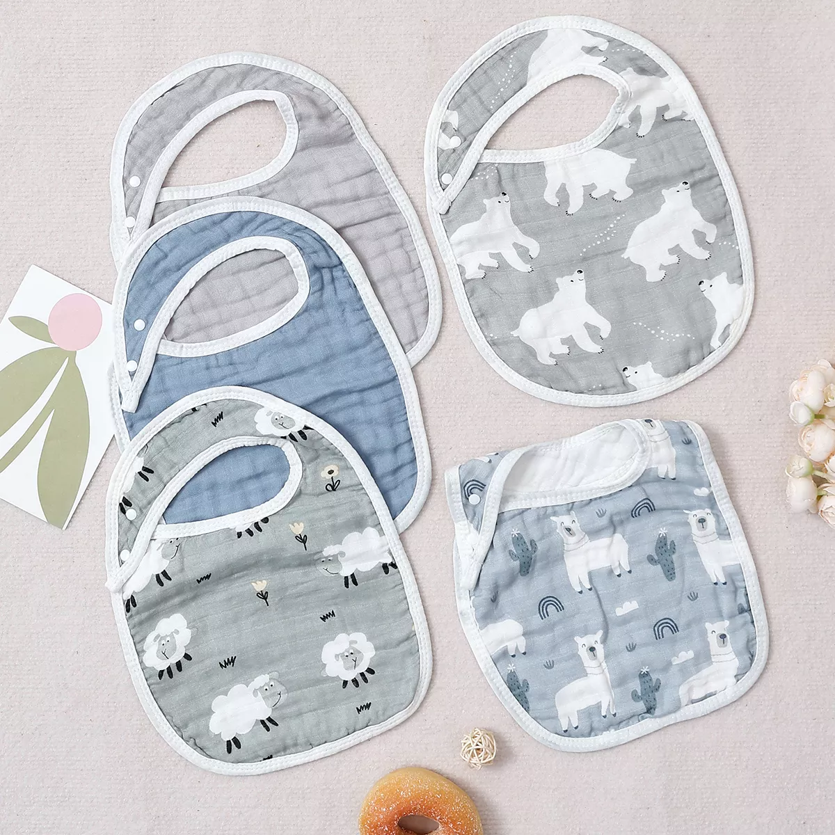 Keep your little one clean, dry, and adorable with this 5-piece bamboo cotton baby bib and burp cloth set. Designed for newborns and infants, these cute round scarf-style bibs are gentle on delicate skin while offering excellent absorbency for daily feeding, drooling, and burping. The breathable bamboo cotton fabric feels soft to the touch and helps prevent irritation, making it perfect for sensitive babies.