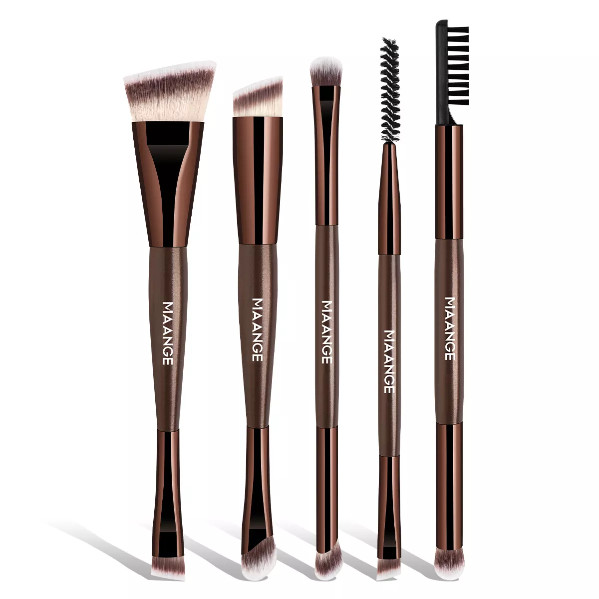 5pcs Double-Ended Makeup Brush Set for Foundation, Eyeshadow & Blending
