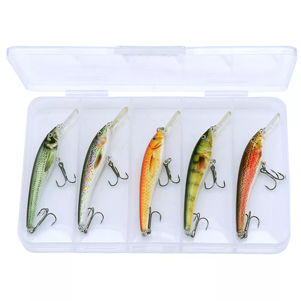5pcs Floating Minnow Fishing Lure Set with Treble Hooks for Pike & Bass