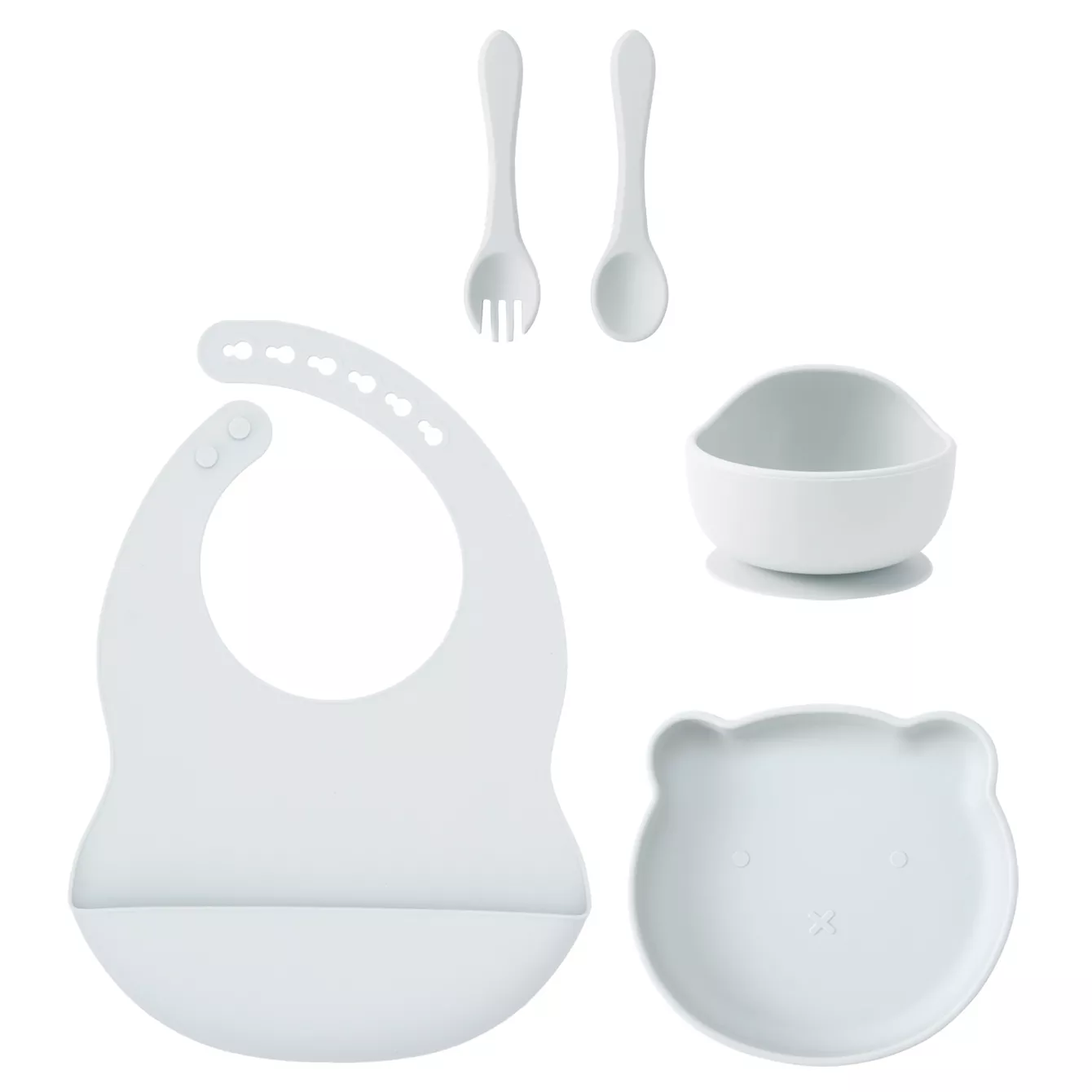 • Complete Feeding Set – Includes suction plate, spoon, fork, bib, and cup lid.