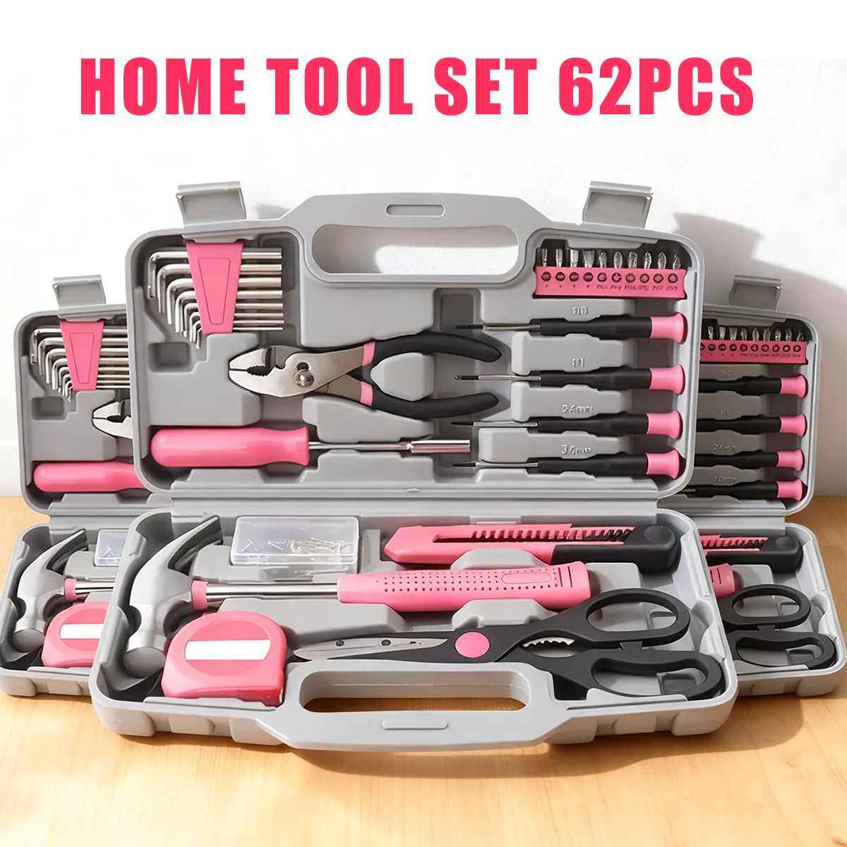 Take control of everyday home repairs with this 62-piece pink household hand tool set designed to make fixing, assembling, and adjusting simple and stress-free. Whether you are tightening a loose screw, hanging wall décor, assembling furniture, or handling quick DIY tasks, this complete tool collection gives you everything you need in one organized place. The sleek pink finish adds a modern, stylish touch while keeping the tools easy to spot when you need them most.