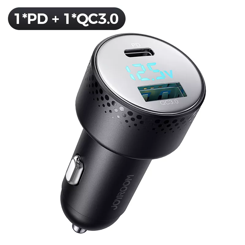 70W Dual Port Fast Car Charger with LED Voltage Display