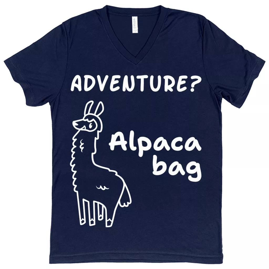 Adventure Alpaca Bag V-Neck T-Shirt – Funny Pun Basic T-Shirt – Adventure Tee