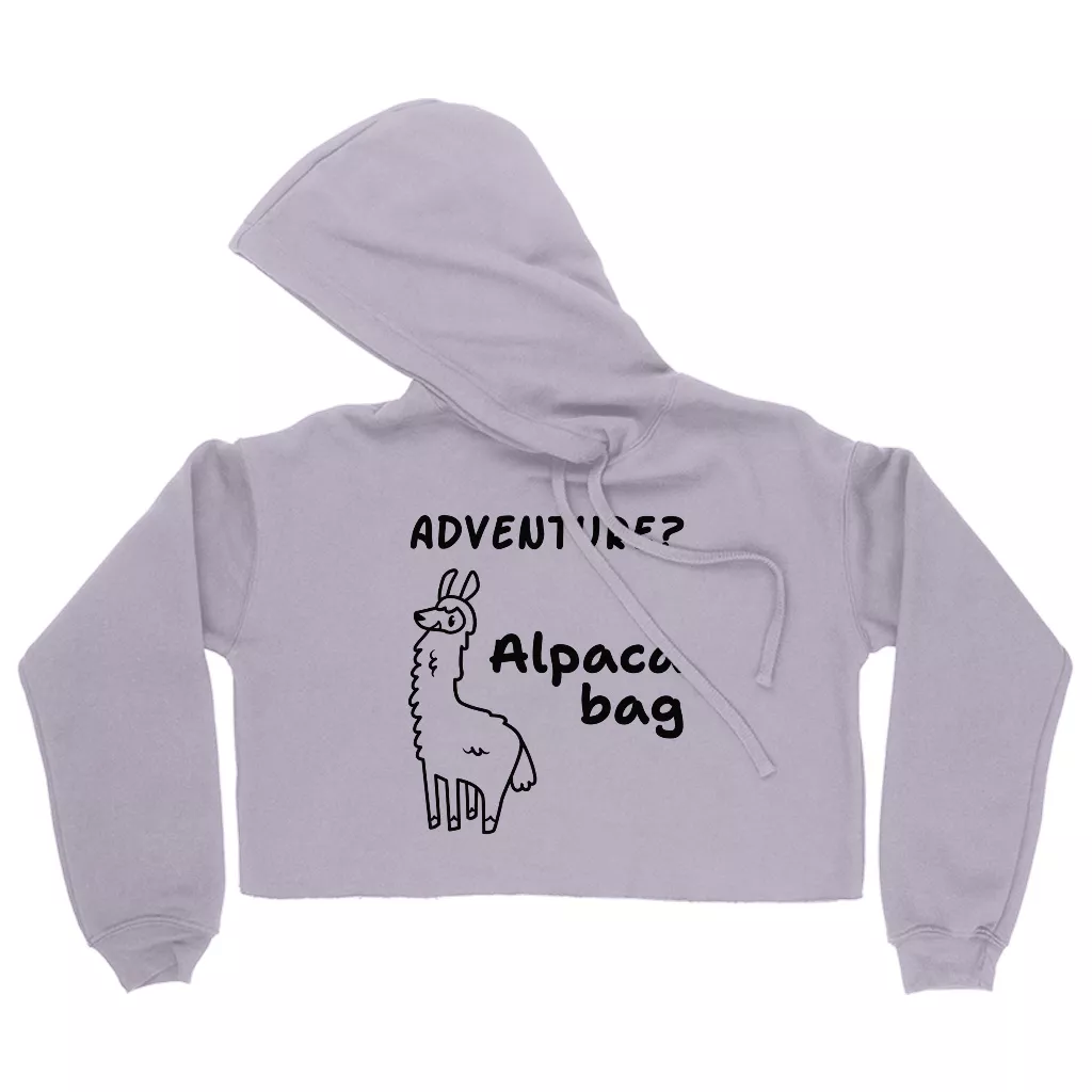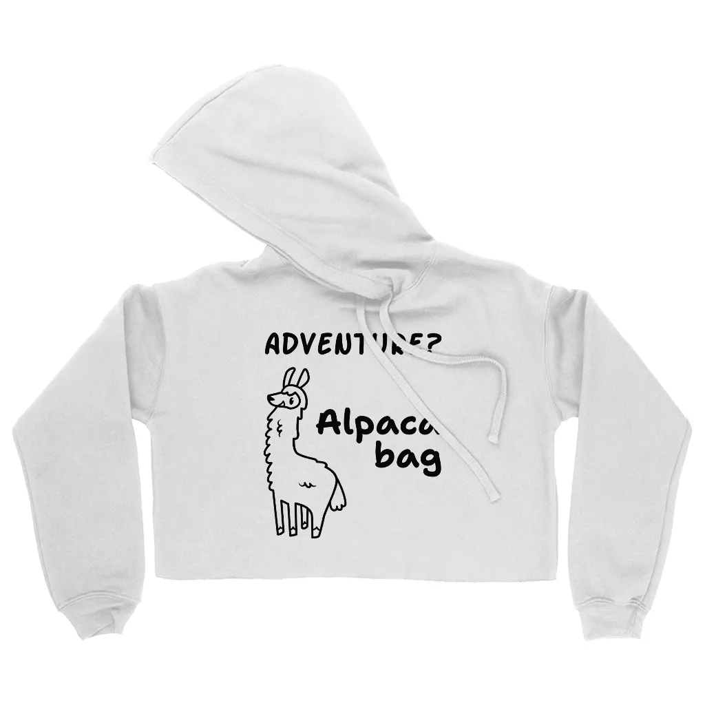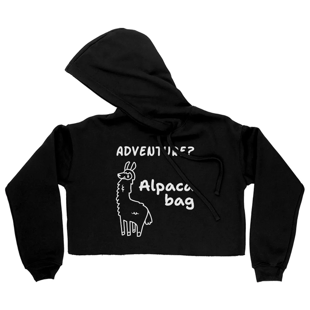 Adventure Alpaca Bag Women’s Cropped Hoodie – Funny Pun Hooded Sweatshirt – Adventure Super Crop Top Hoodies