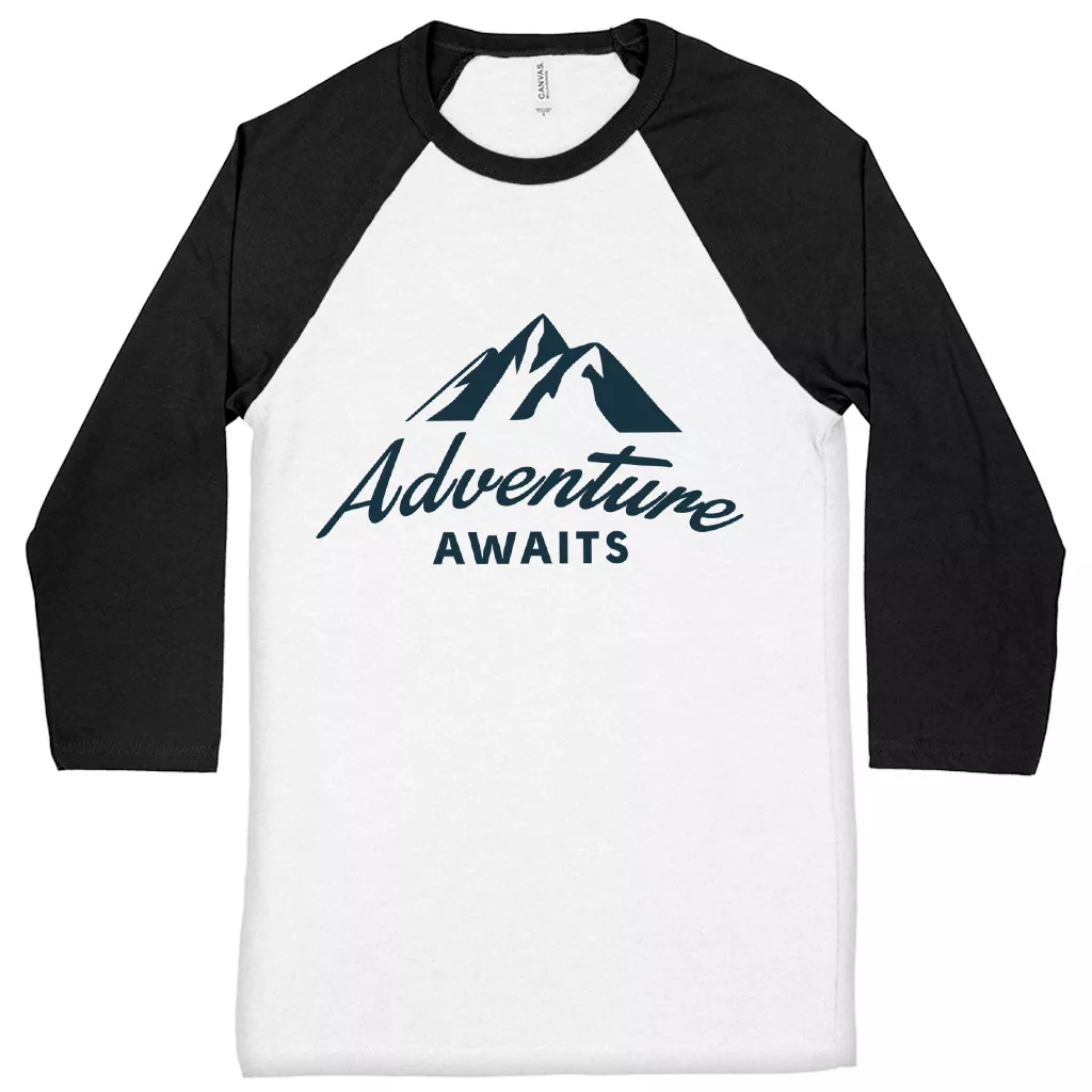 Adventure Awaits Baseball T-Shirt – Camping 3/4 Sleeve – Hiking Raglan Jersey Shirt