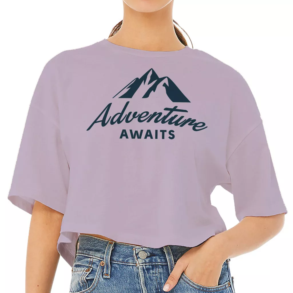 Adventure Awaits Cropped T-Shirt – Hiking Trendy Tee – Camping Women’s Basic T-Shirt