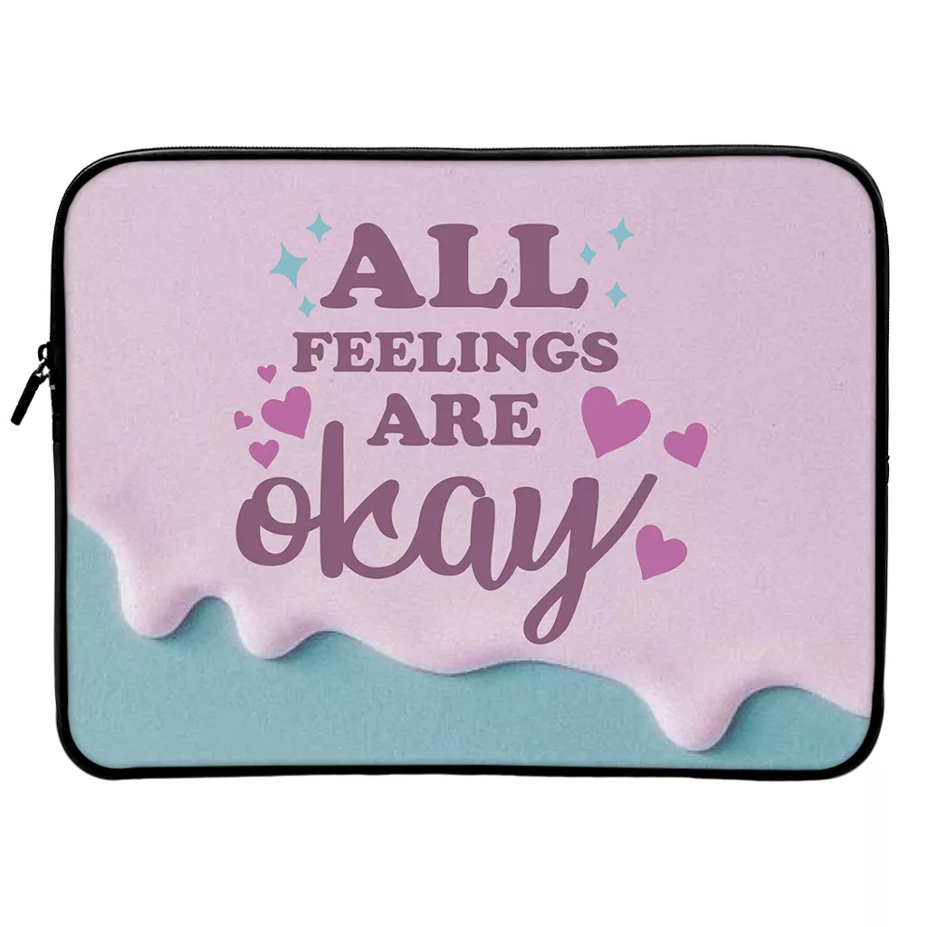 All Feelings Are Okay Laptop Sleeve 12-15 inch – Empowering Quote Carrying Case Cover for MacBook – Wellness Dell, Asus, HP Laptop Sleeve