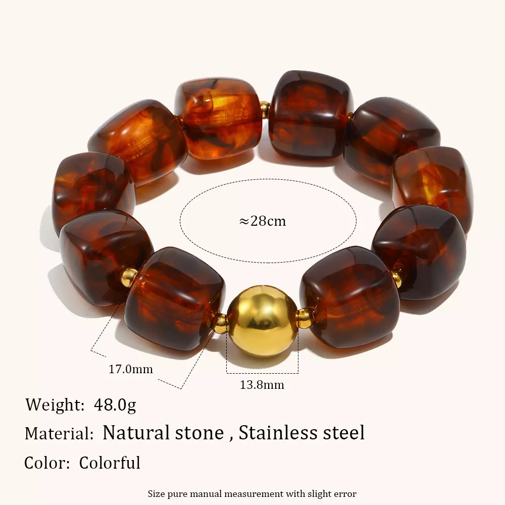 Amber Acrylic Bead Bracelet Stainless Steel Retro Fashion Jewelry