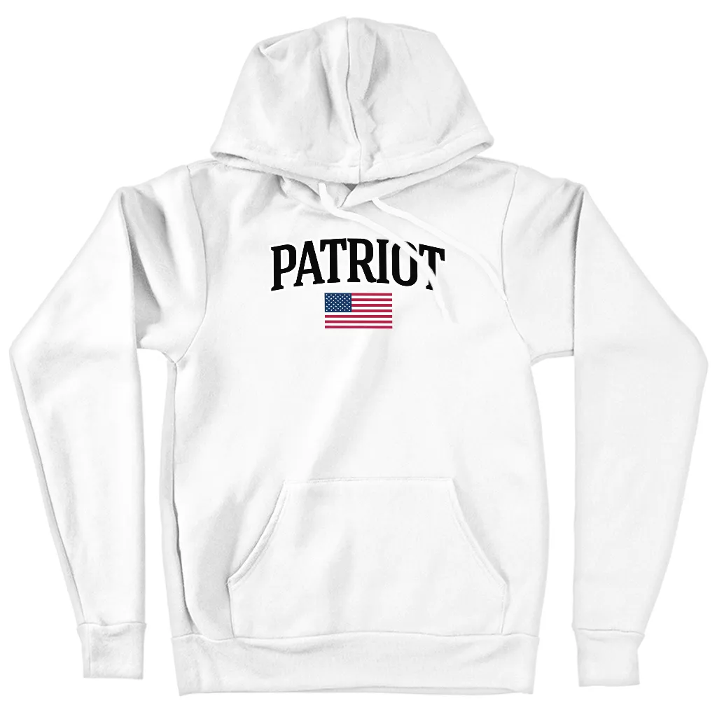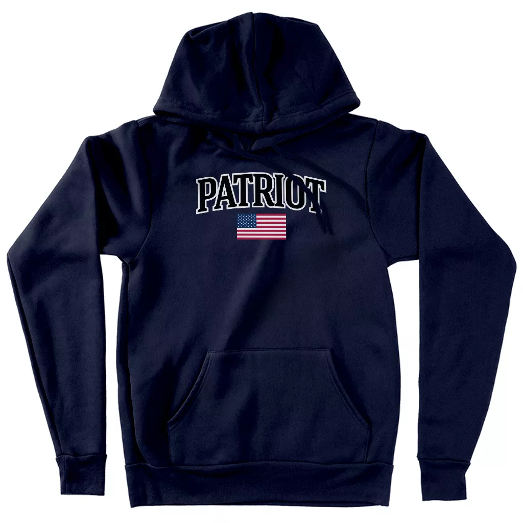 Our Airlume clean cotton is combed and ring-spun for texture and feel unlike any other. America Flag Patriot Hoodie is made of 50/50 cotton/polyester fleece.