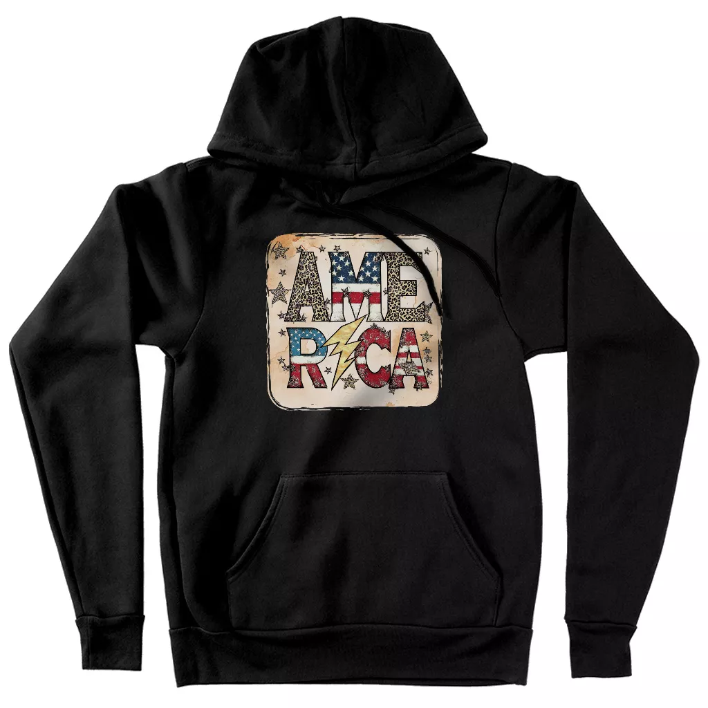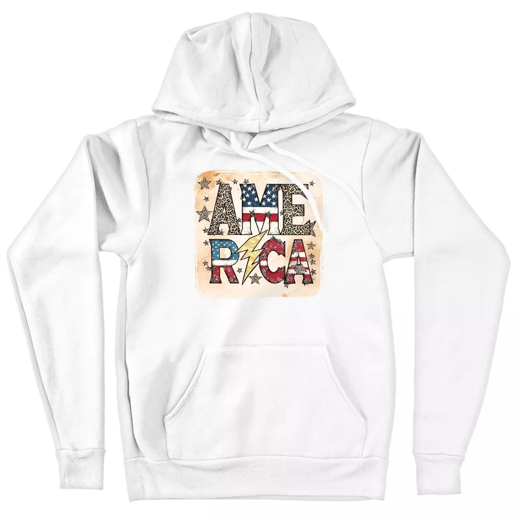America Graphic Hoodie – Independence Day Hooded Sweatshirt – Retro Design Unisex Hoodie