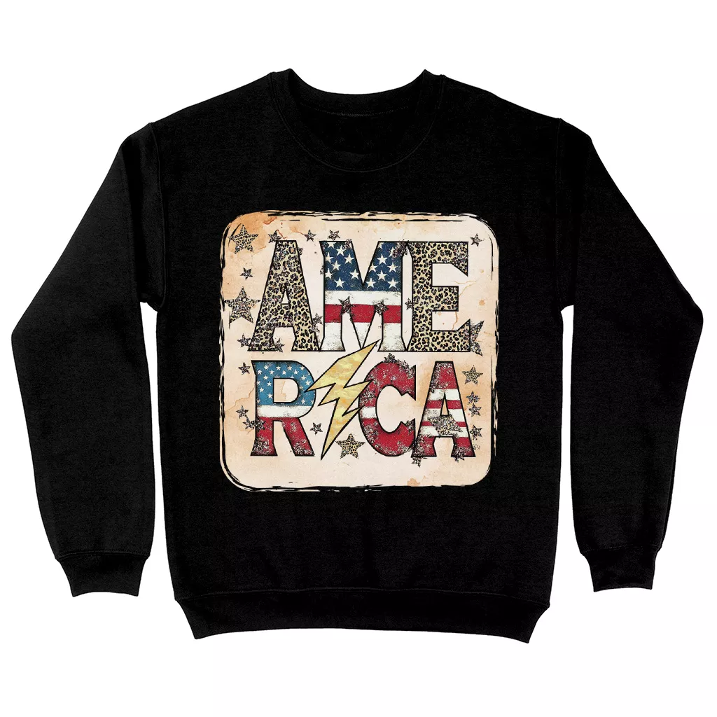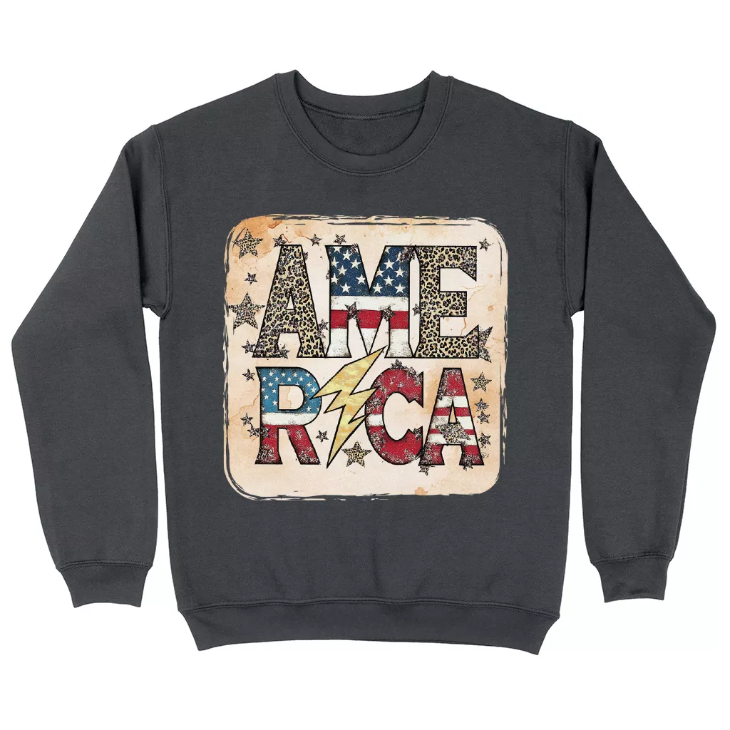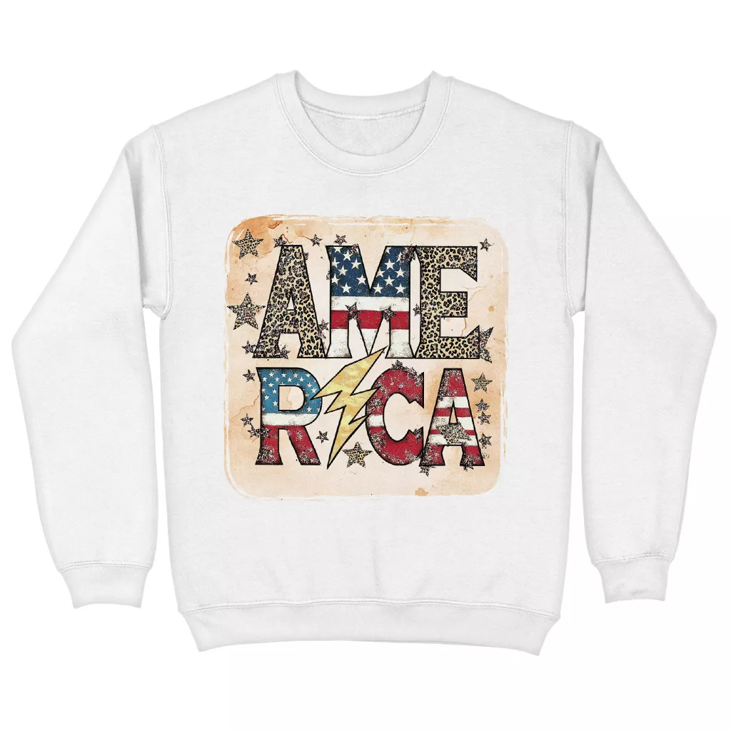 America Graphic Sweatshirt – Independence Day Crewneck Sweatshirt – Retro Design Unisex Sweatshirt
