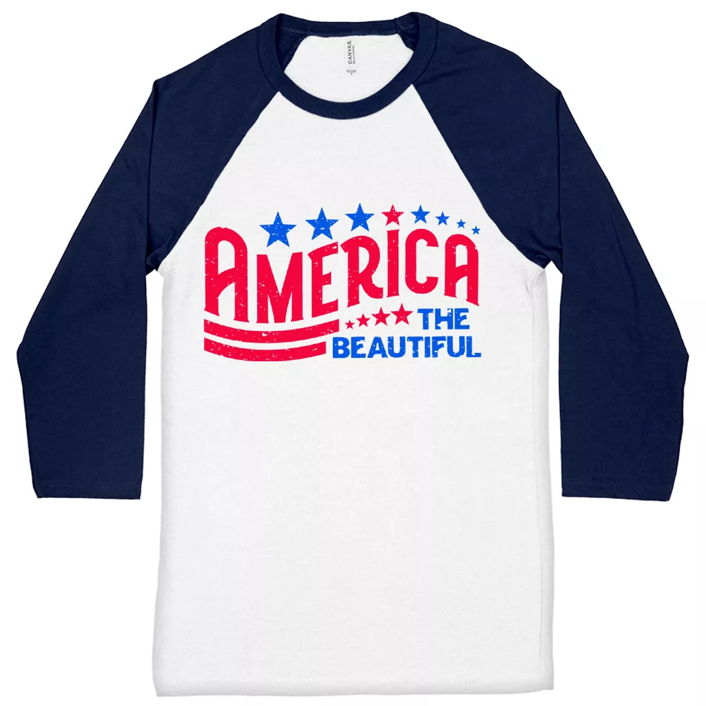 America The Beautiful Baseball T-Shirt – 4th Of July 3/4 Sleeve – Retro Raglan Jersey Shirt