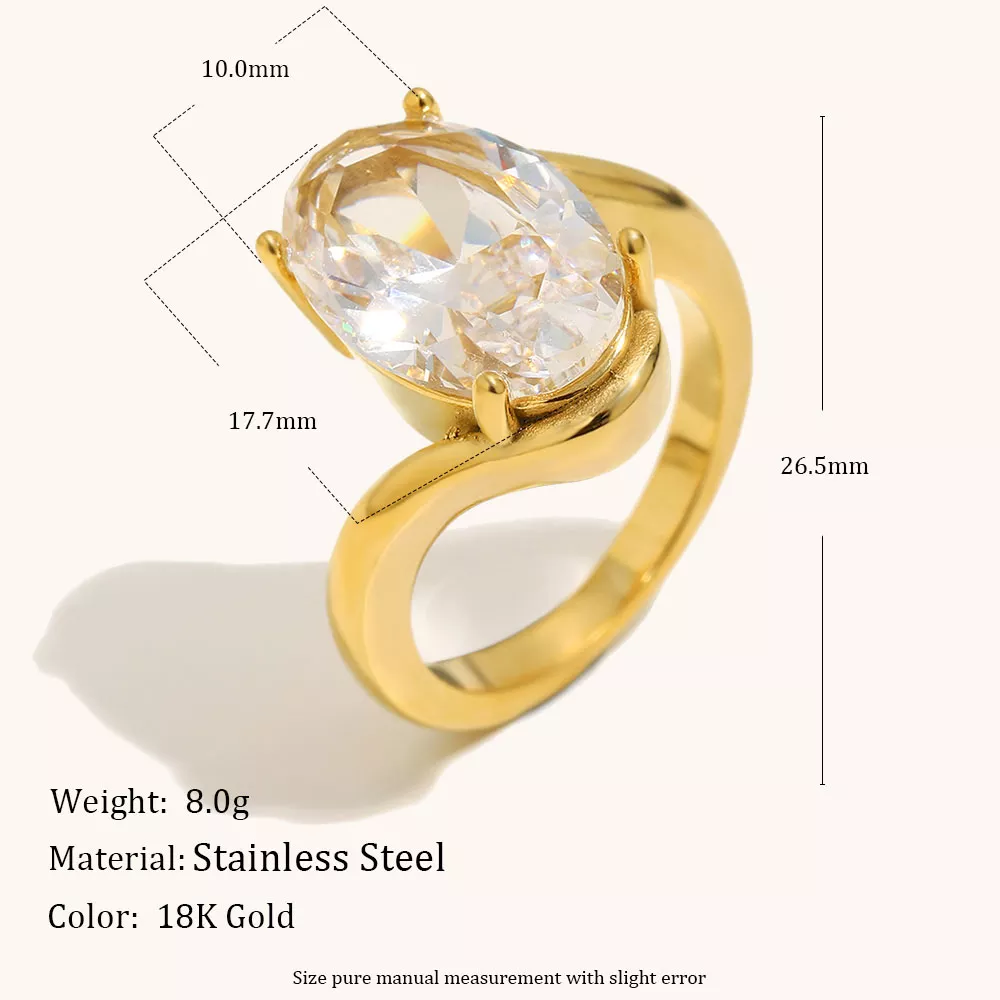 Unlike ordinary rings, this piece features a unique elliptical shape that adds artistic flair to your jewelry collection. The carefully placed zircon stones provide just the right amount of sparkle without being overpowering. Its balance of elegance and bold design makes it a standout accessory that feels both trendy and timeless.