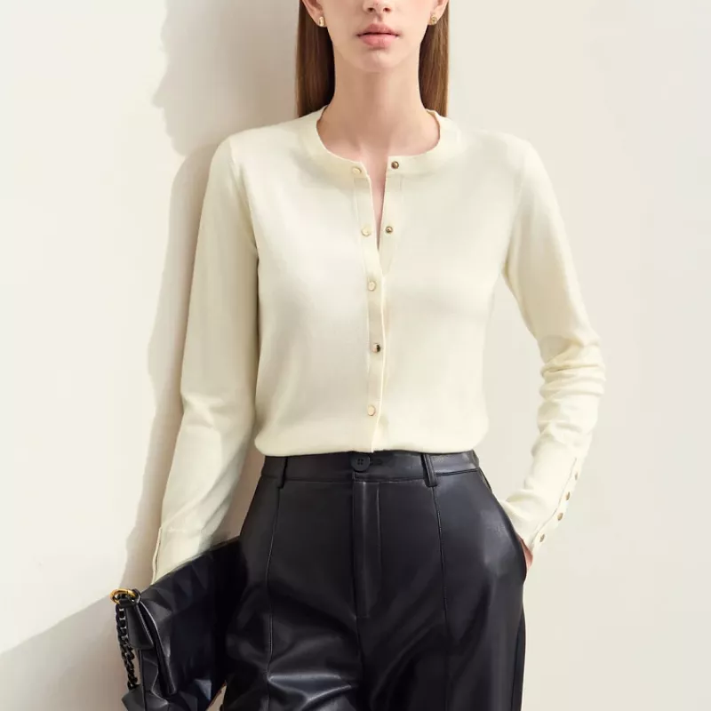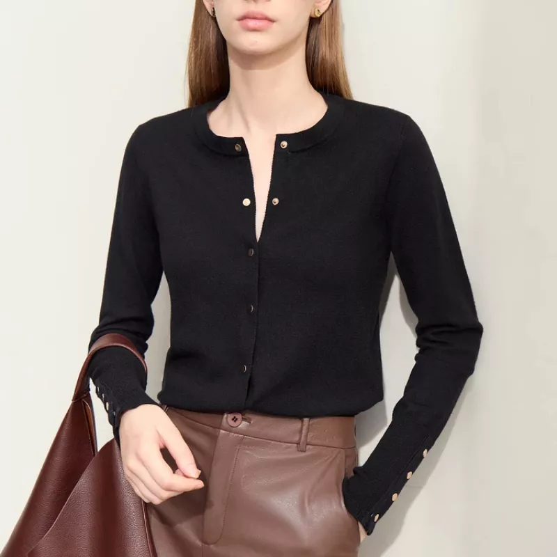 Autumn Knit Wool Cardigan for Women – Button-Down Round Neck Office Sweater