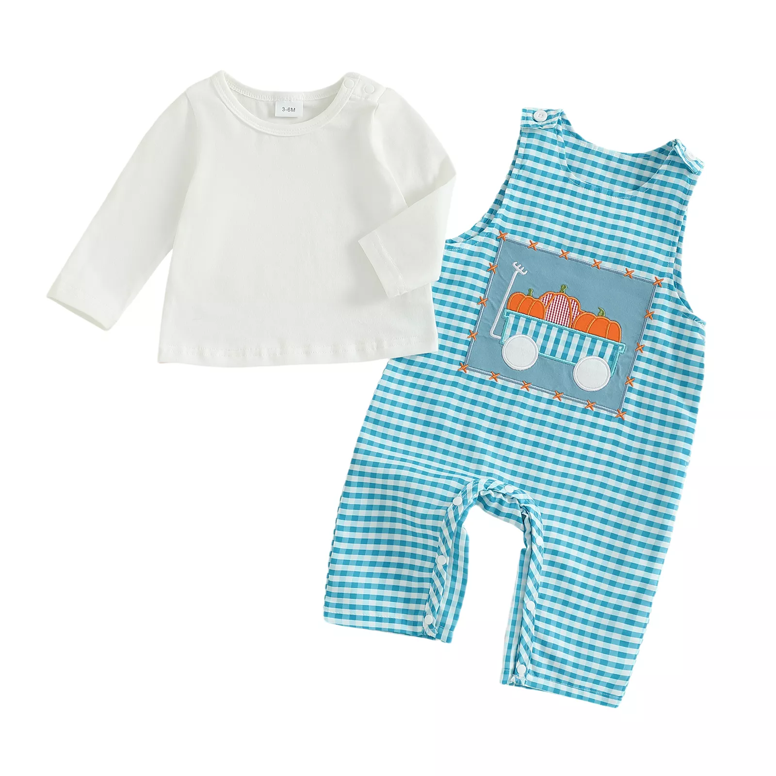 Baby Boys Halloween Outfit 2-Piece Long Sleeve Top & Plaid Overalls Set