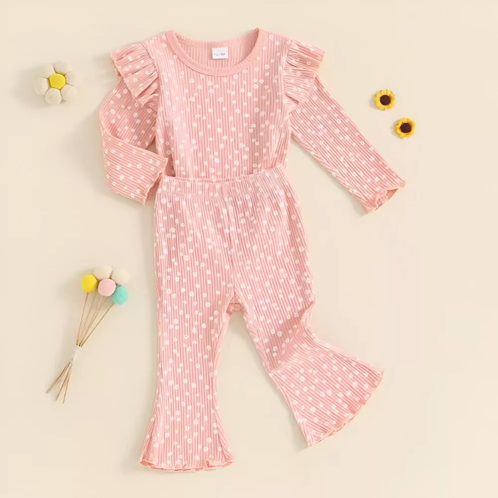 Baby Girl 2Pcs Outfit Ruffle Long Sleeve Top and Flare Pants Set