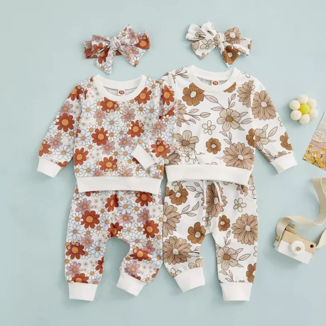 • 3-piece set: Includes floral print pullover, elastic waist pants, and a matching headband