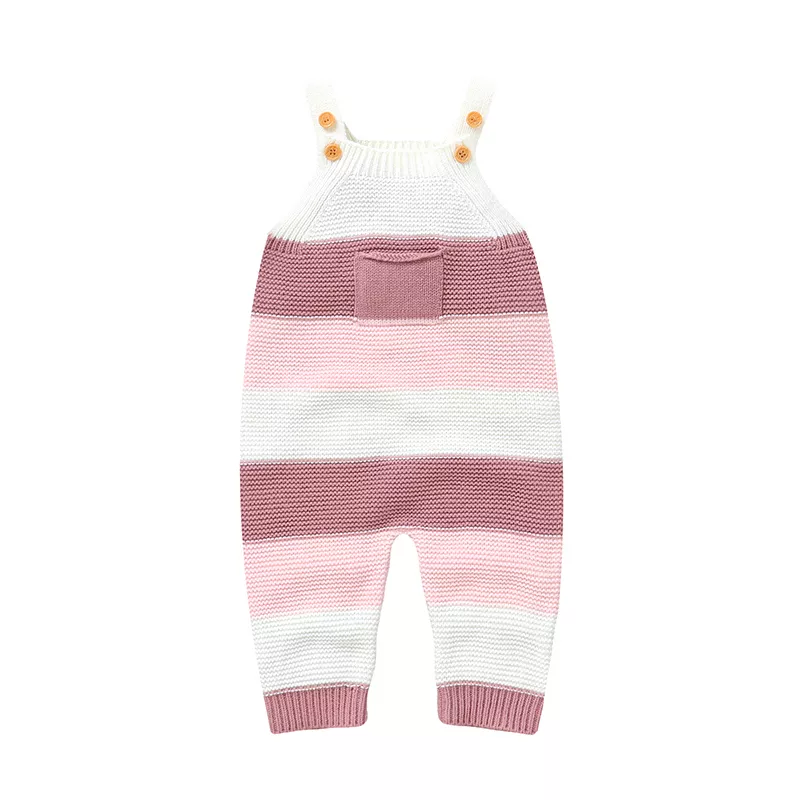 Baby Girl Knitted Romper Sleeveless Striped Jumpsuit for Newborn to 18M