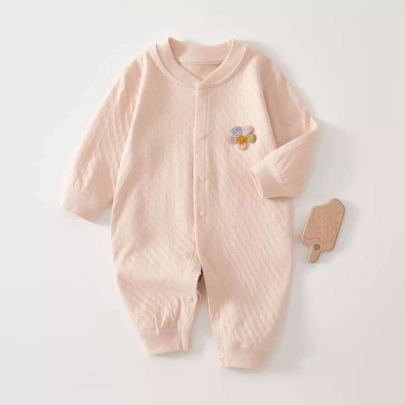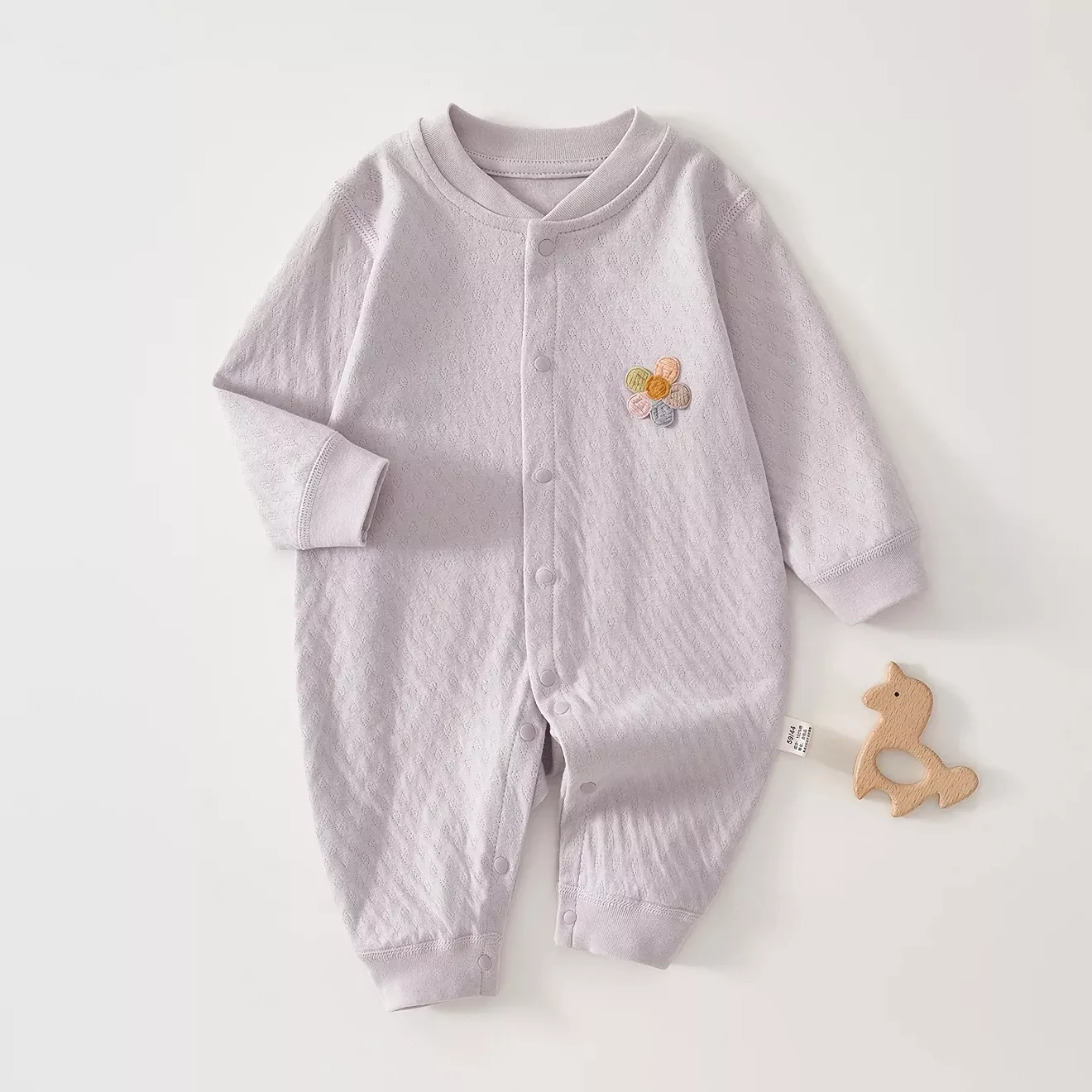 Getting your baby dressed shouldn’t be a struggle. This romper features a single-breasted front closure for quick outfit changes, saving you time during busy mornings or late-night diaper changes. The O-neck collar slides on smoothly without irritating your baby’s neck, while the long sleeves offer added warmth and protection.