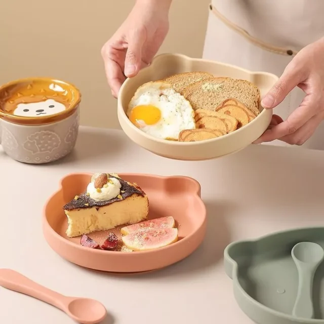 Baby Silicone Suction Plate with Cartoon Bear Design for Toddlers