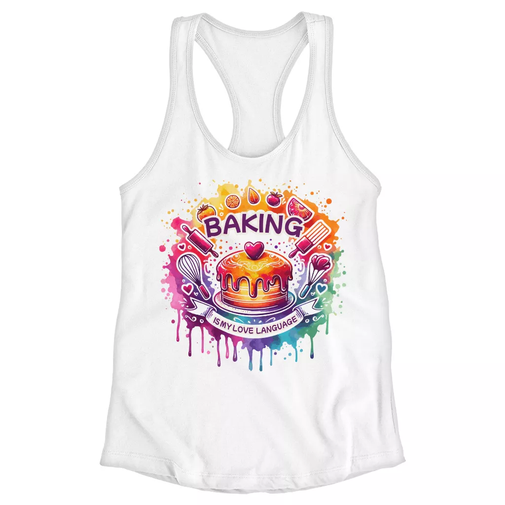 Baking Is My Love Language Racerback Tank – Kitchen Chef Tank Top – Colorful Graphic Tank