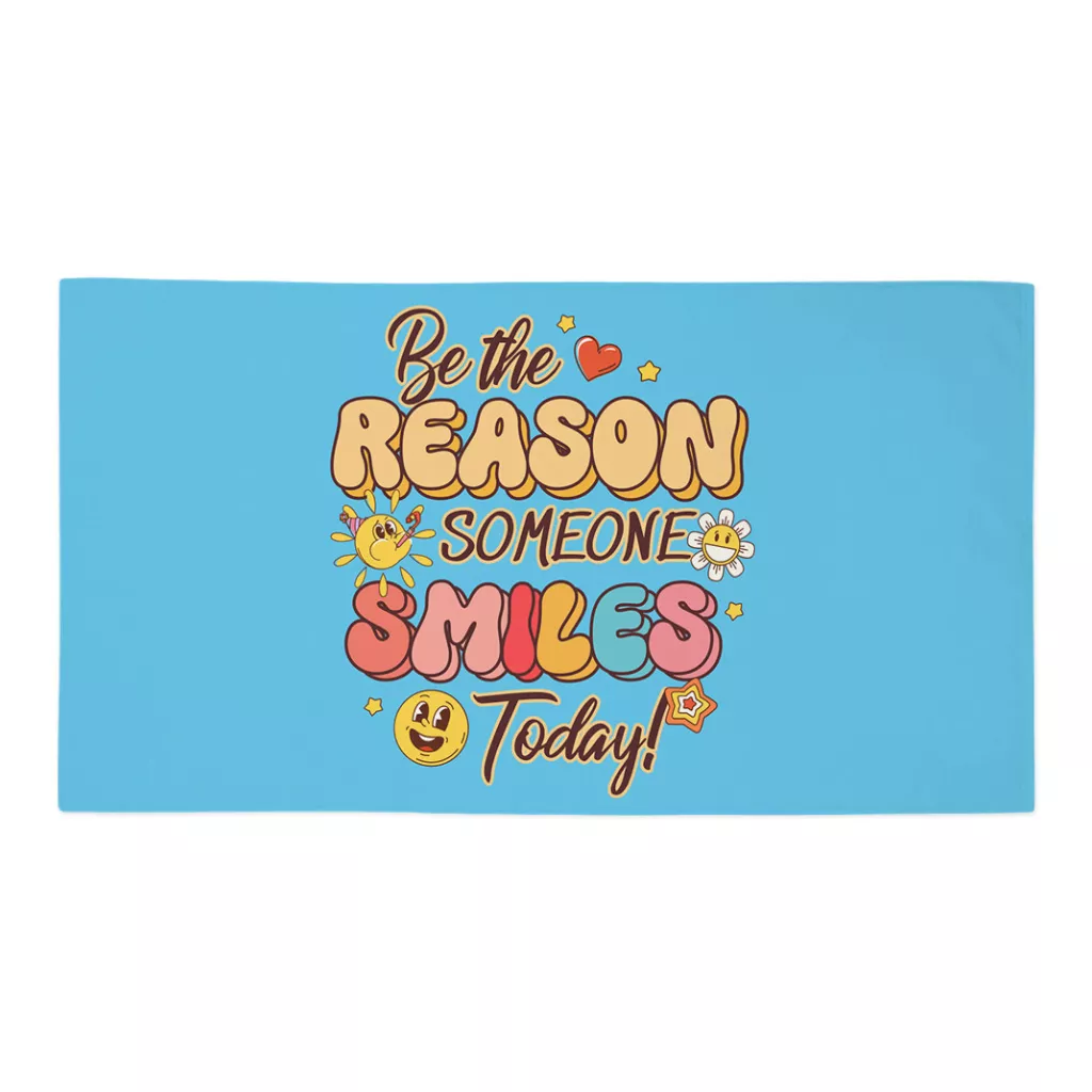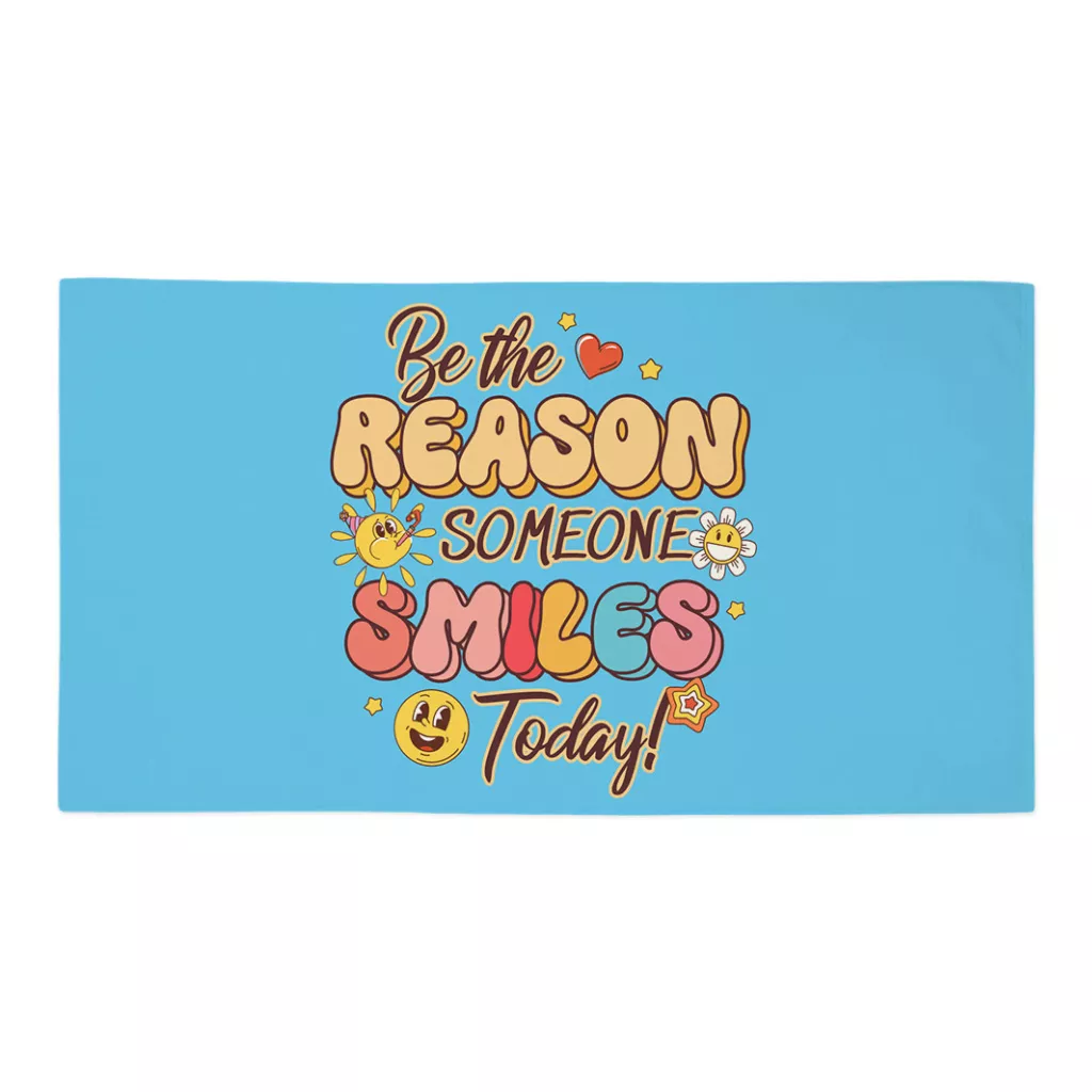 Be The Reason Someone Smiles Bath Spa Towel – Boho Graphic Polycotton Towel – Positive Quotes Gift Towel