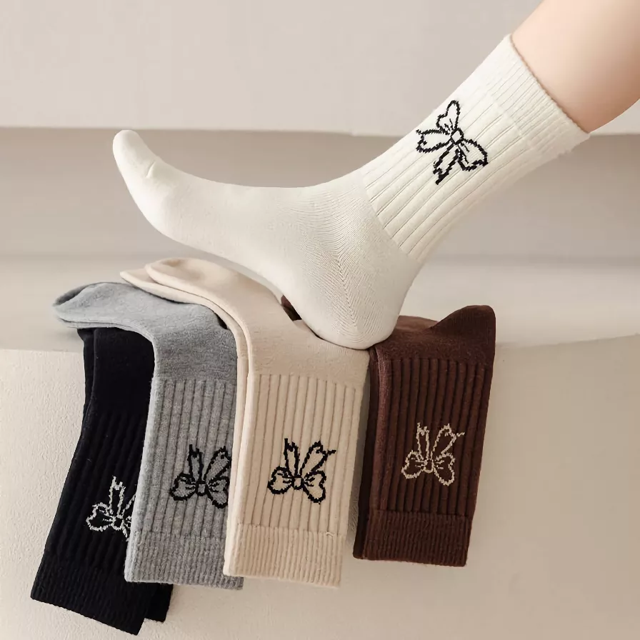 Add a soft, charming touch to your daily outfits with these beautifully designed mid-tube socks. Featuring a clean solid color base with a delicate bow detail, this 5-pair set brings together simplicity and feminine style in the most wearable way. Designed for comfort and made to feel light on your feet, these socks are perfect for women who want fashion that fits naturally into everyday life.