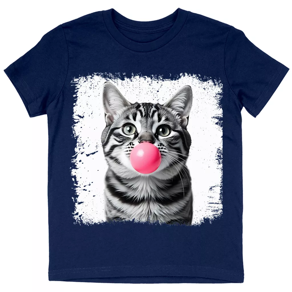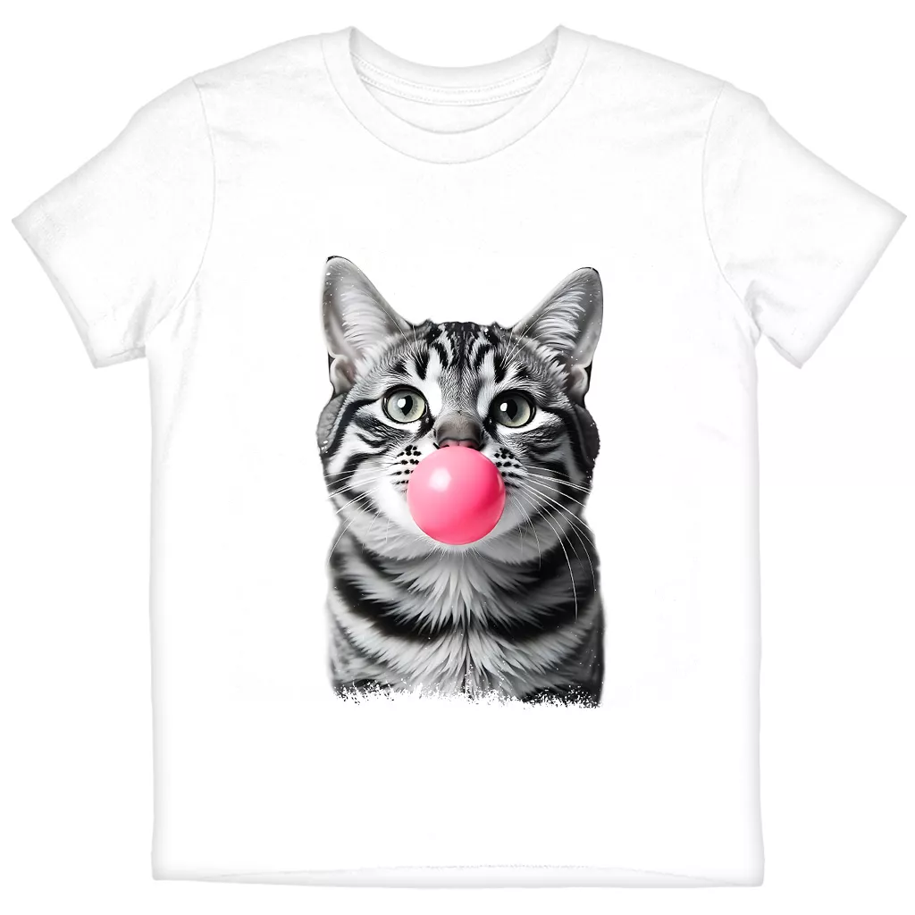 Bubblegum Cat Kids’ Cotton T-Shirt – Cute Cat Short Sleeve Tee – Animal Lover Gift T-Shirt for Kids