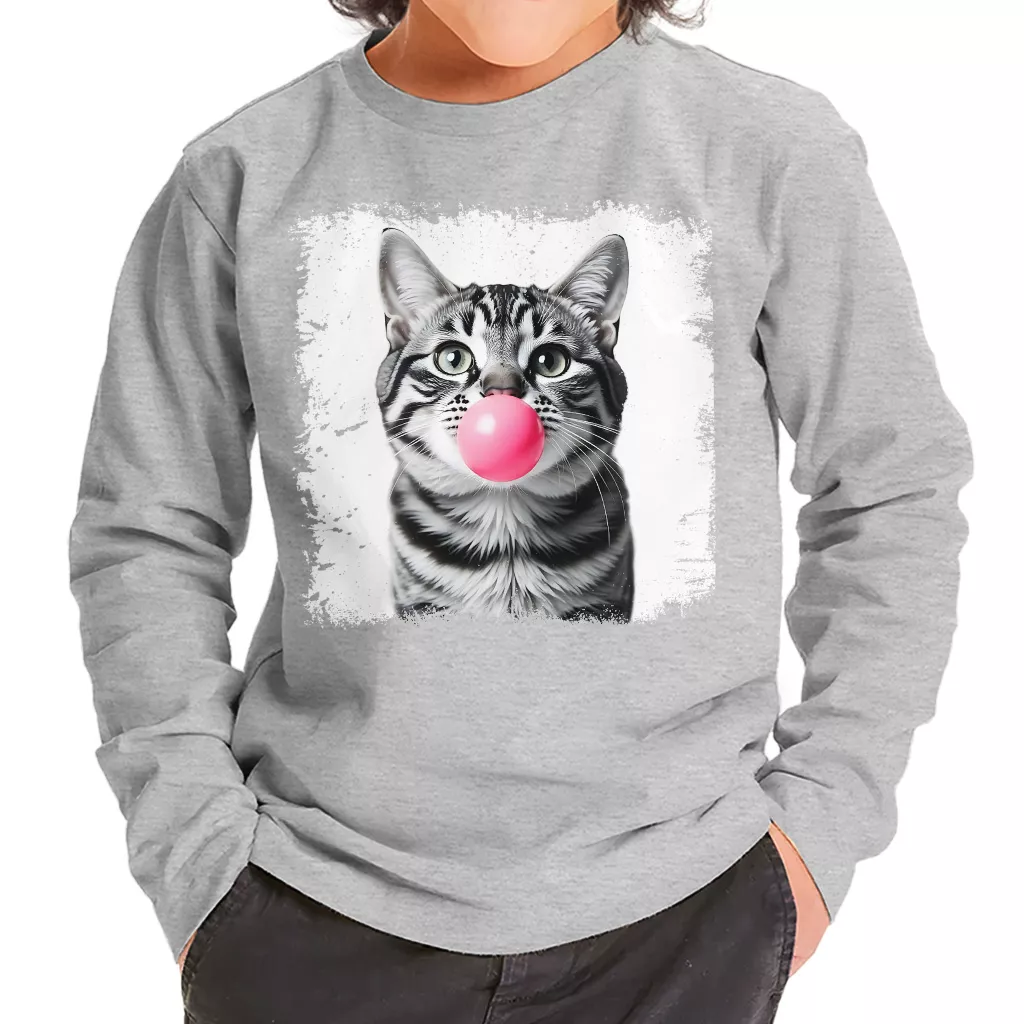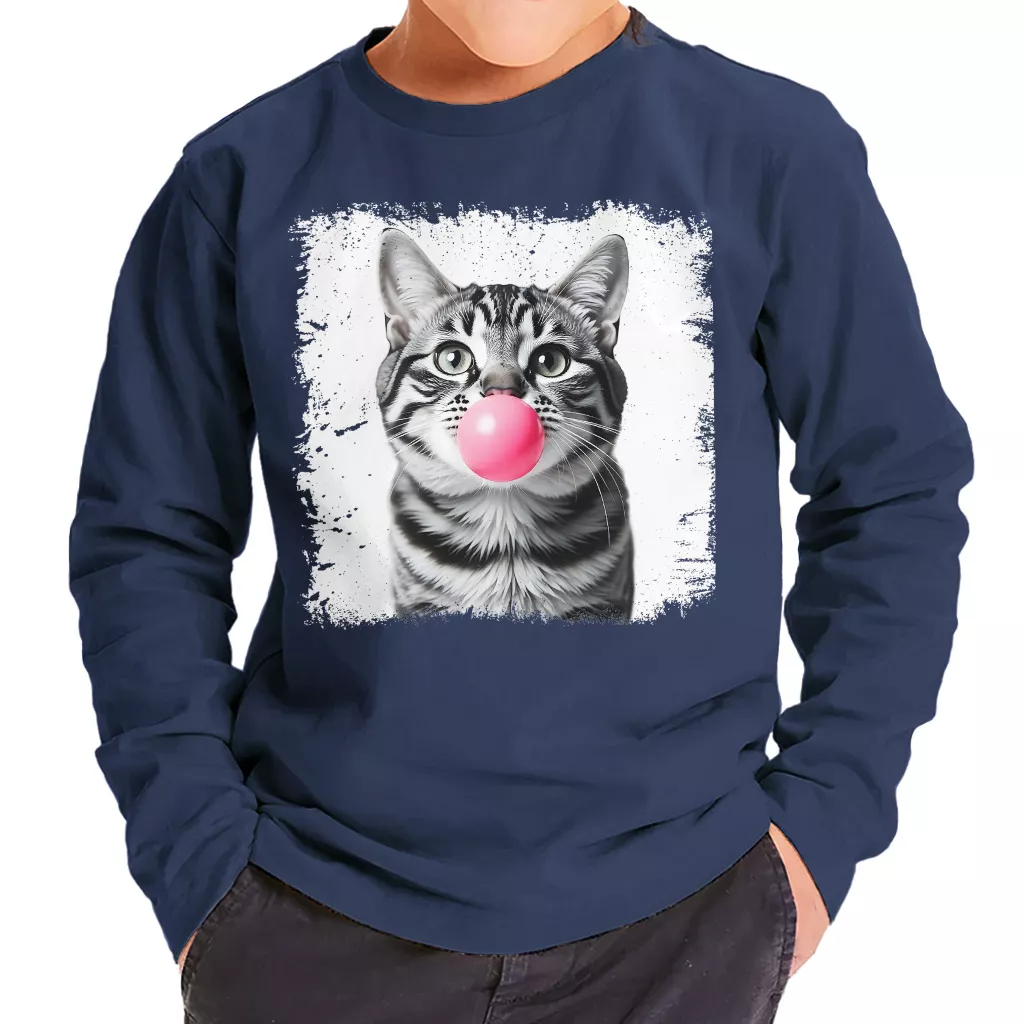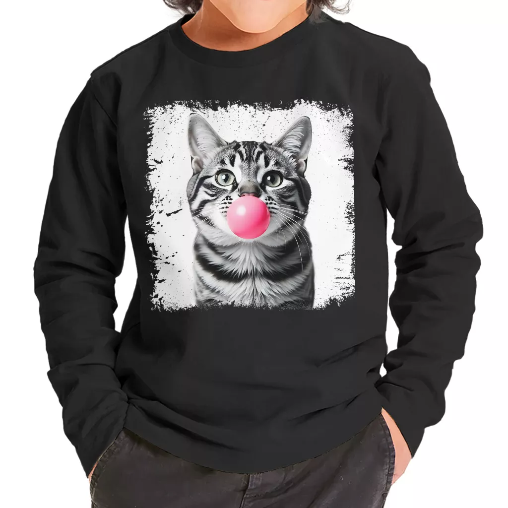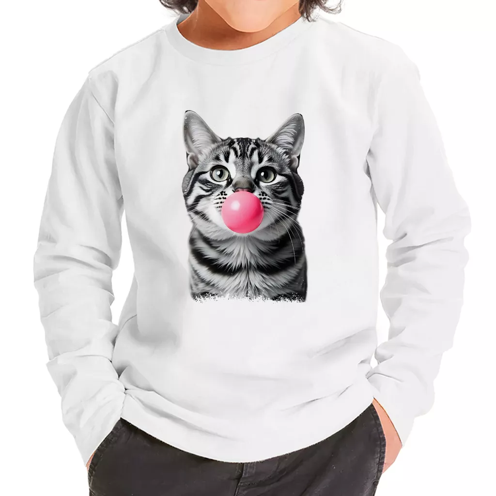 Bubblegum Cat Toddler Long Sleeve T-Shirt – Cute Cat Boy Girl Tee – Animal Lover Gift T-Shirt for Kids