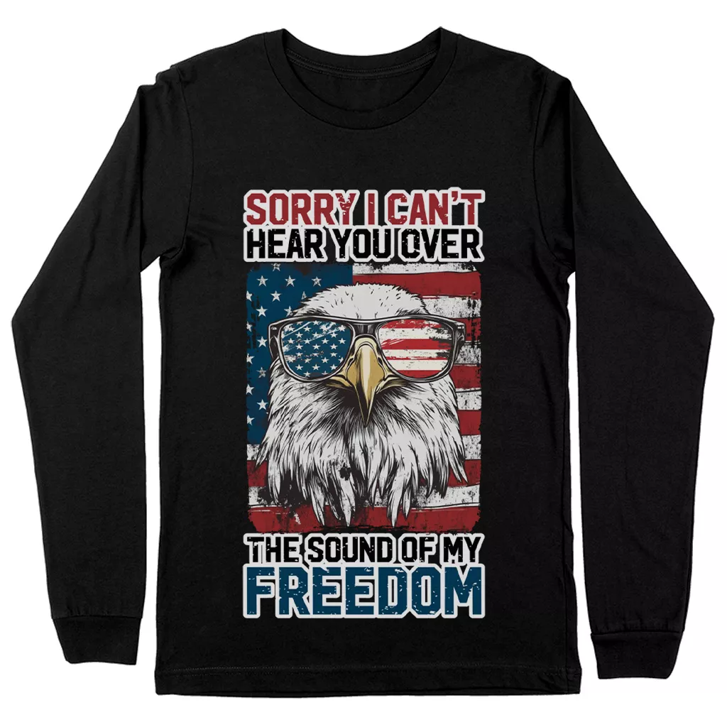 Can’t Hear You Over The Sound Of My Freedom Long Sleeve T-Shirt – Cool Eagle T-Shirt – American Flag Basic Tee