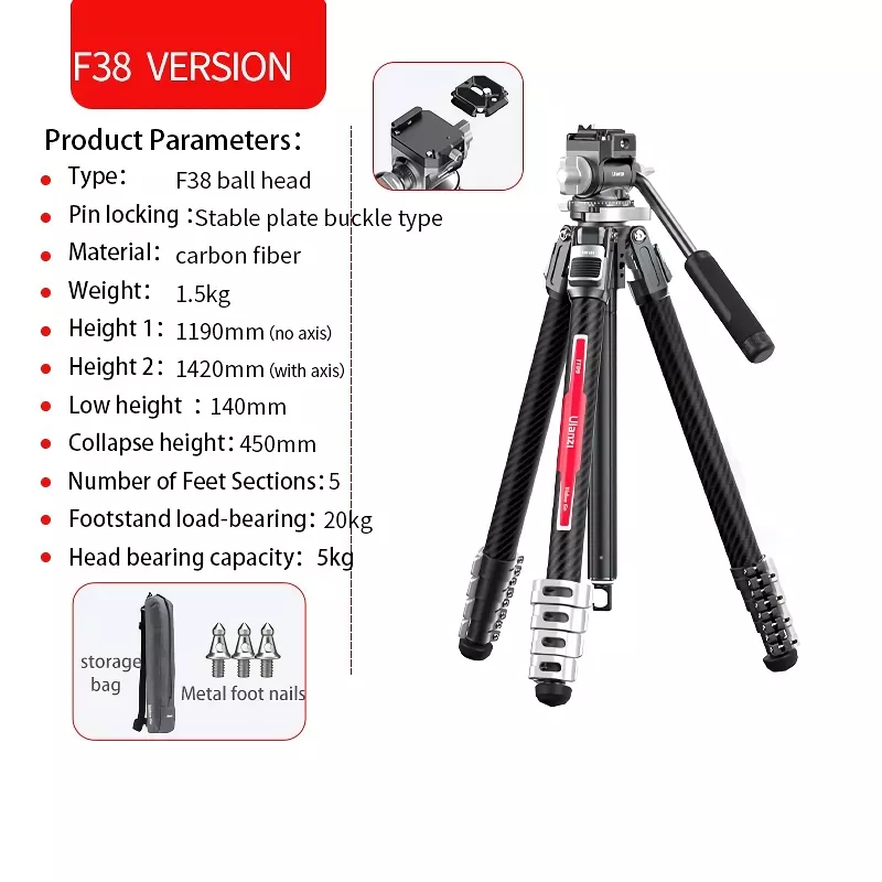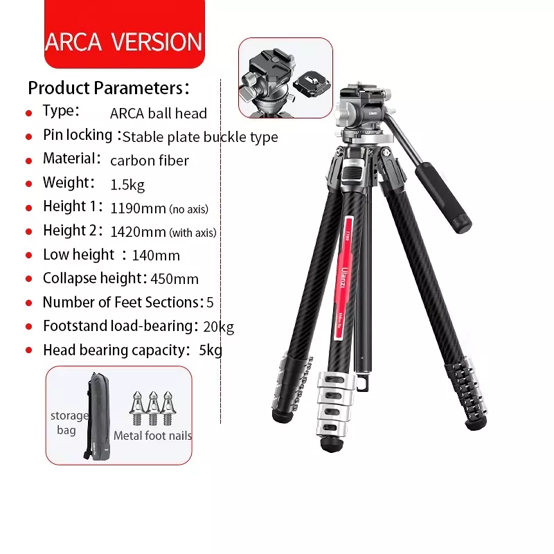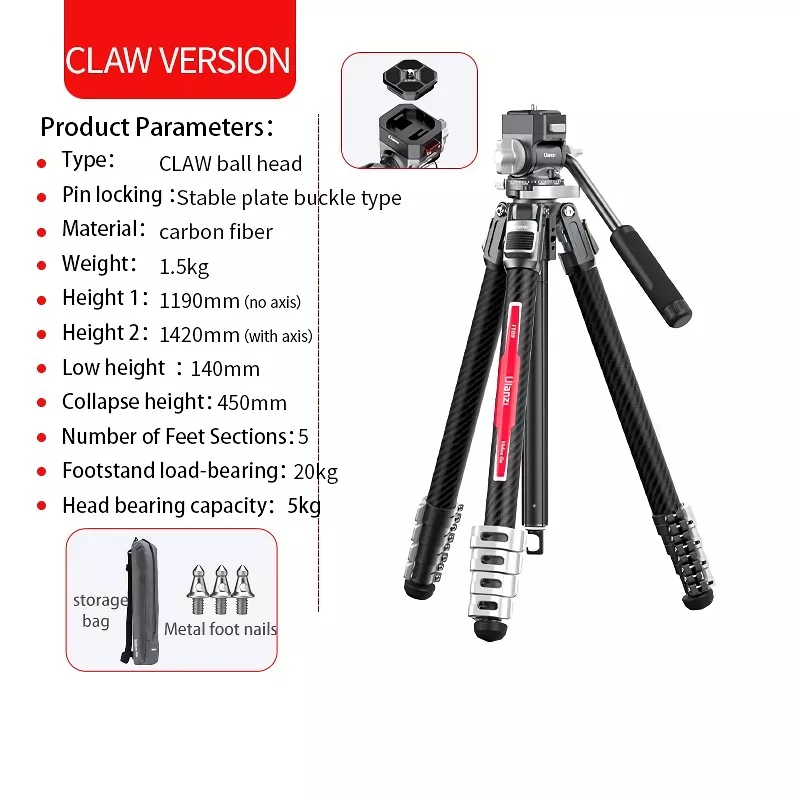 Constructed from lightweight yet sturdy 10-layer carbon fiber, our tripod offers the stability you need without the bulk. It features a unique 360° panoramic leveling bowl that ensures perfectly aligned shots and the flexibility to capture images from various angles. With the quick release plate, you can effortlessly switch between gear setups, making it perfect for photographers on the move.