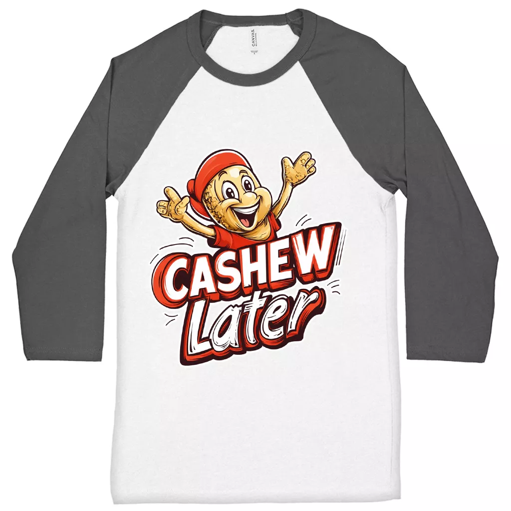 Cashew Later Baseball T-Shirt – Snack Lover 3/4 Sleeve – Funny Cashew Raglan Jersey Shirt