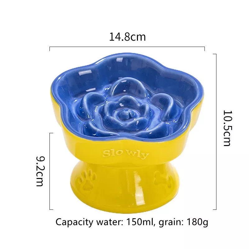 Perfect for everyday feeding, this bowl is suitable for both dry kibble and wet food, as well as water. Use it during regular meals or as a special feeding dish to encourage mindful eating. Its gentle incline and flower design make it especially great for kittens, cats with flat faces, or small dog breeds that benefit from slower feeding.